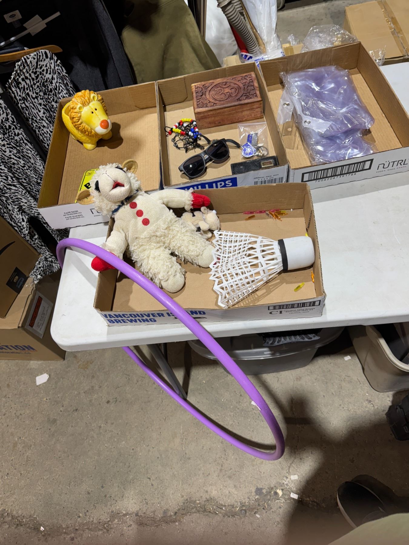 Lamb, chop, hula, hoop, wallet, carved box and other miscellaneous items