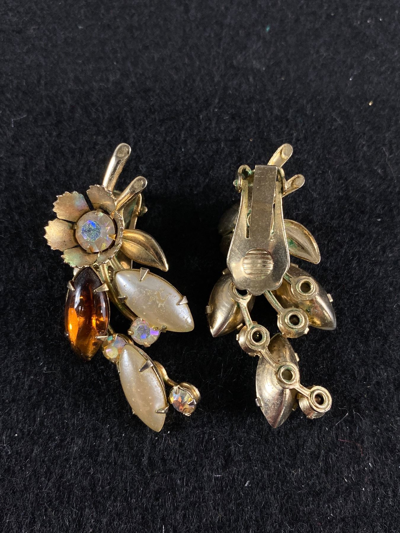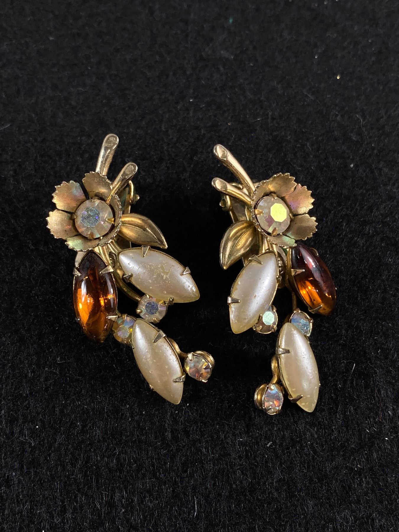 Large 1950's Rhinestone and Faux Pearl