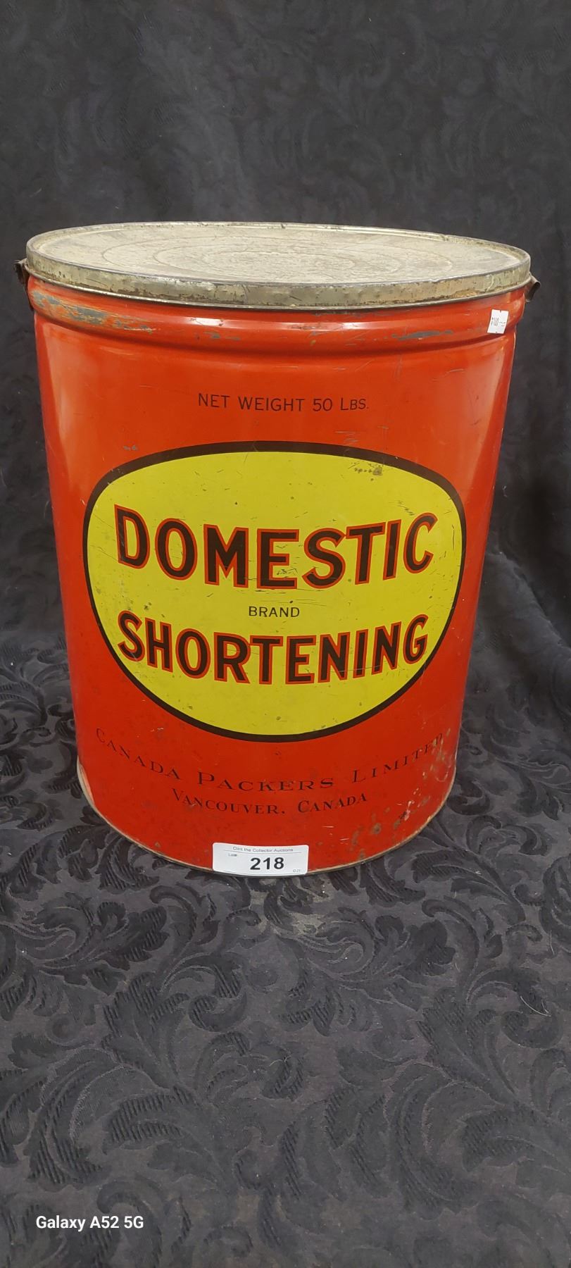 Large 1950s Domestic Shortening 5 gallon tin