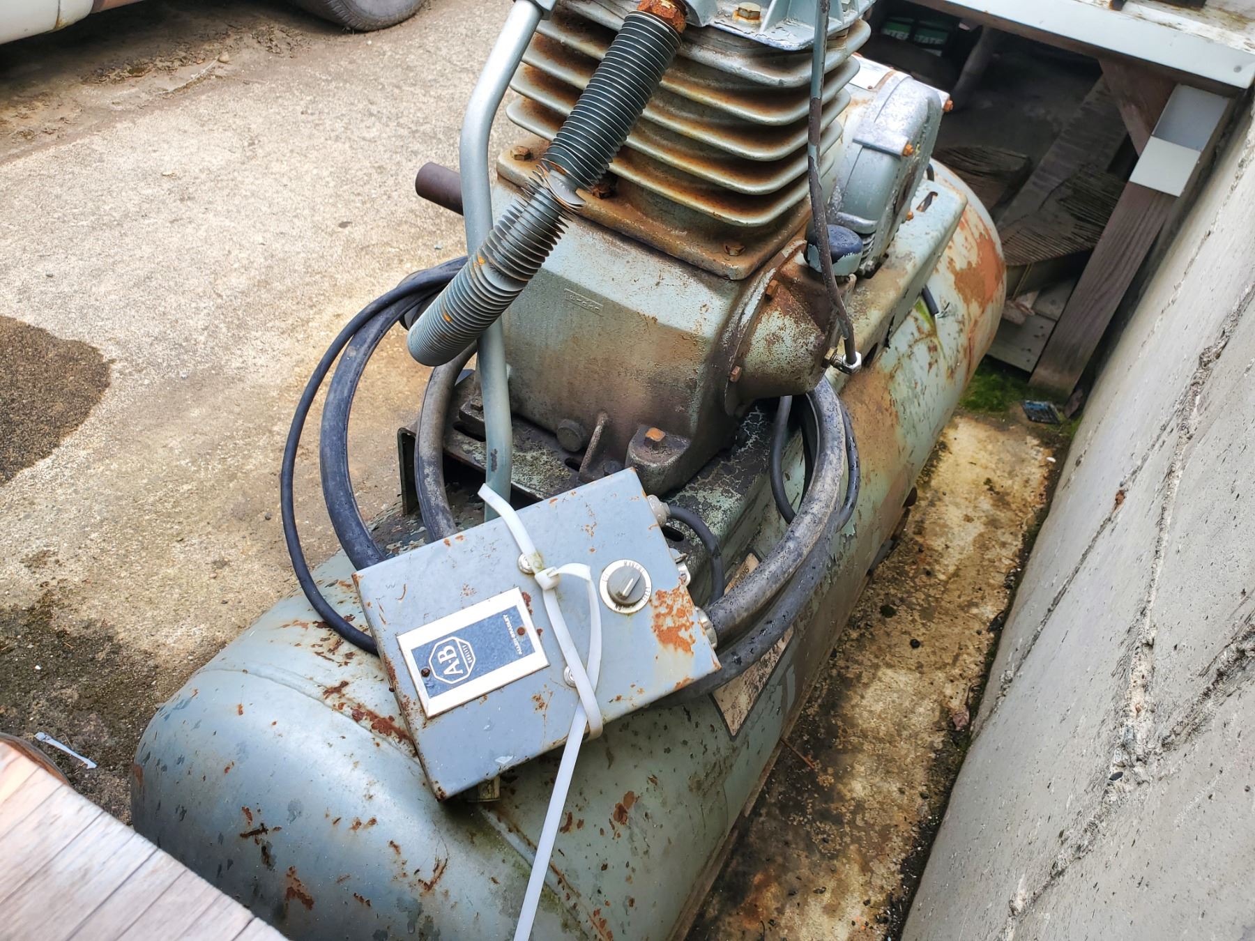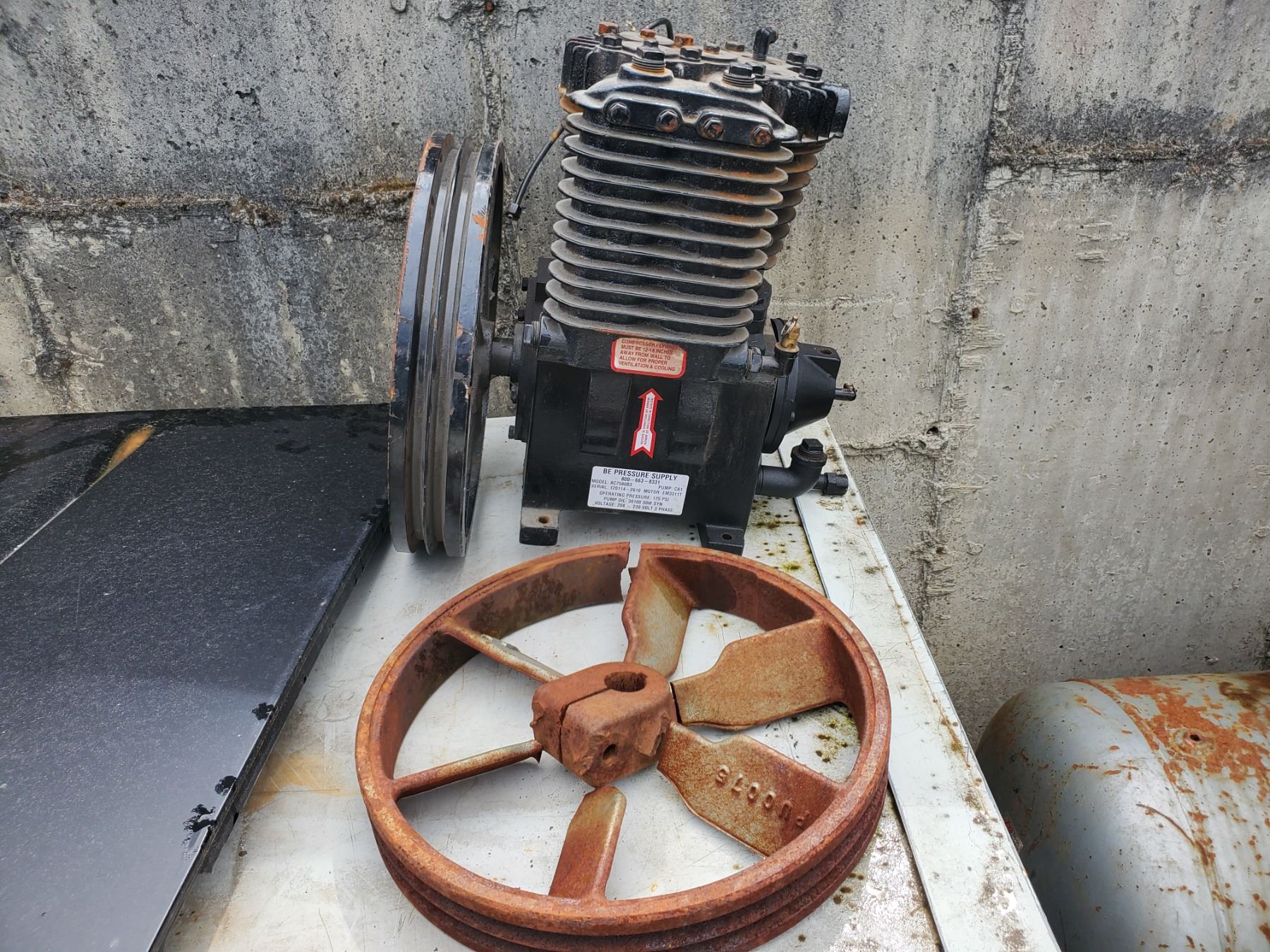 Large Air Compressor with new Pressure supply pump - Items have not been tested - Viewing Recommended- 17% Buyer Fee. Payment Processed through Live Auction World ( Visa or Master Card ) pick up Saturday or Tuesday