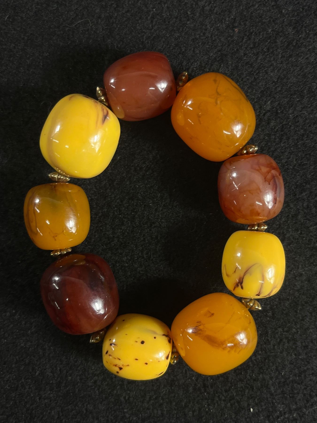Large Amber Colour Beads with Silver Spacers Stretch Bracelet