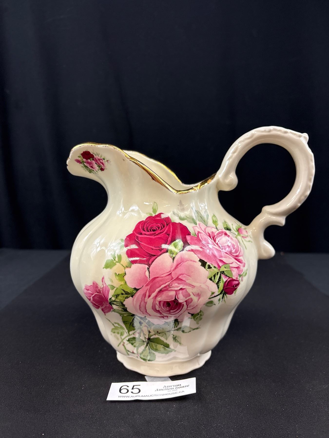 Large Antique Staffordshire Rose Water Pitcher Made in England, Approx 8" Tall