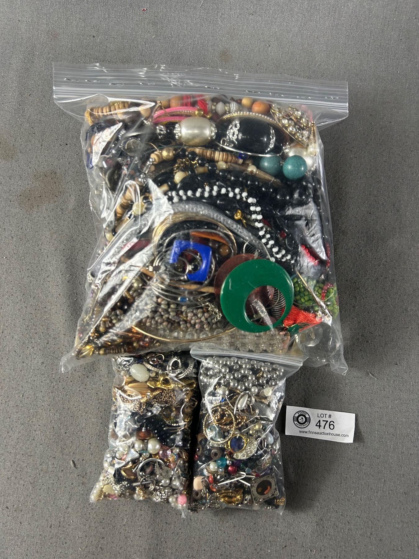 Large Bag of 2 Small Bags of Misc Jewelry Beads Parts Etc