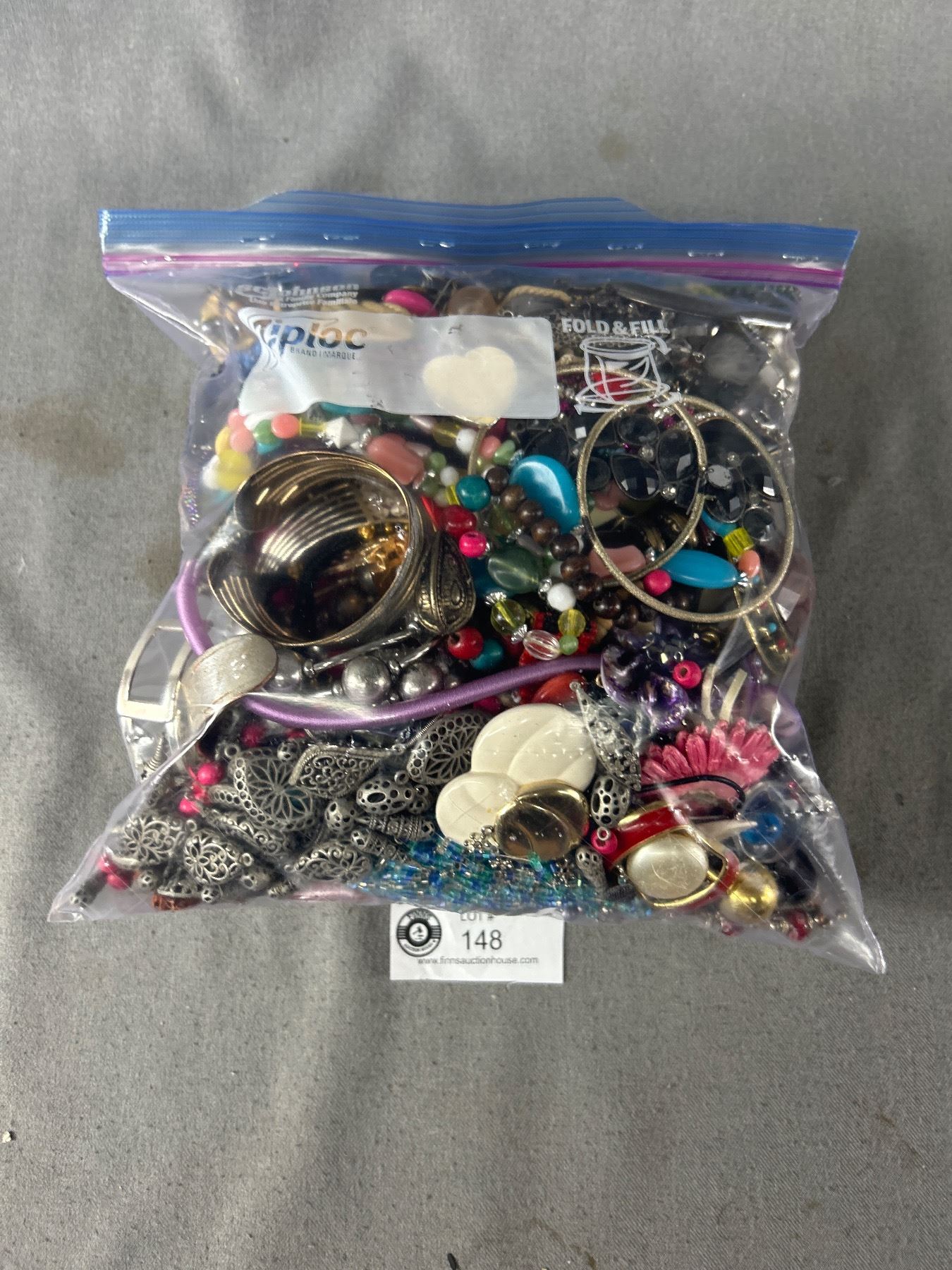 Large Bag w/ Lot Of Various Costume Jewelry, Parts, Etc