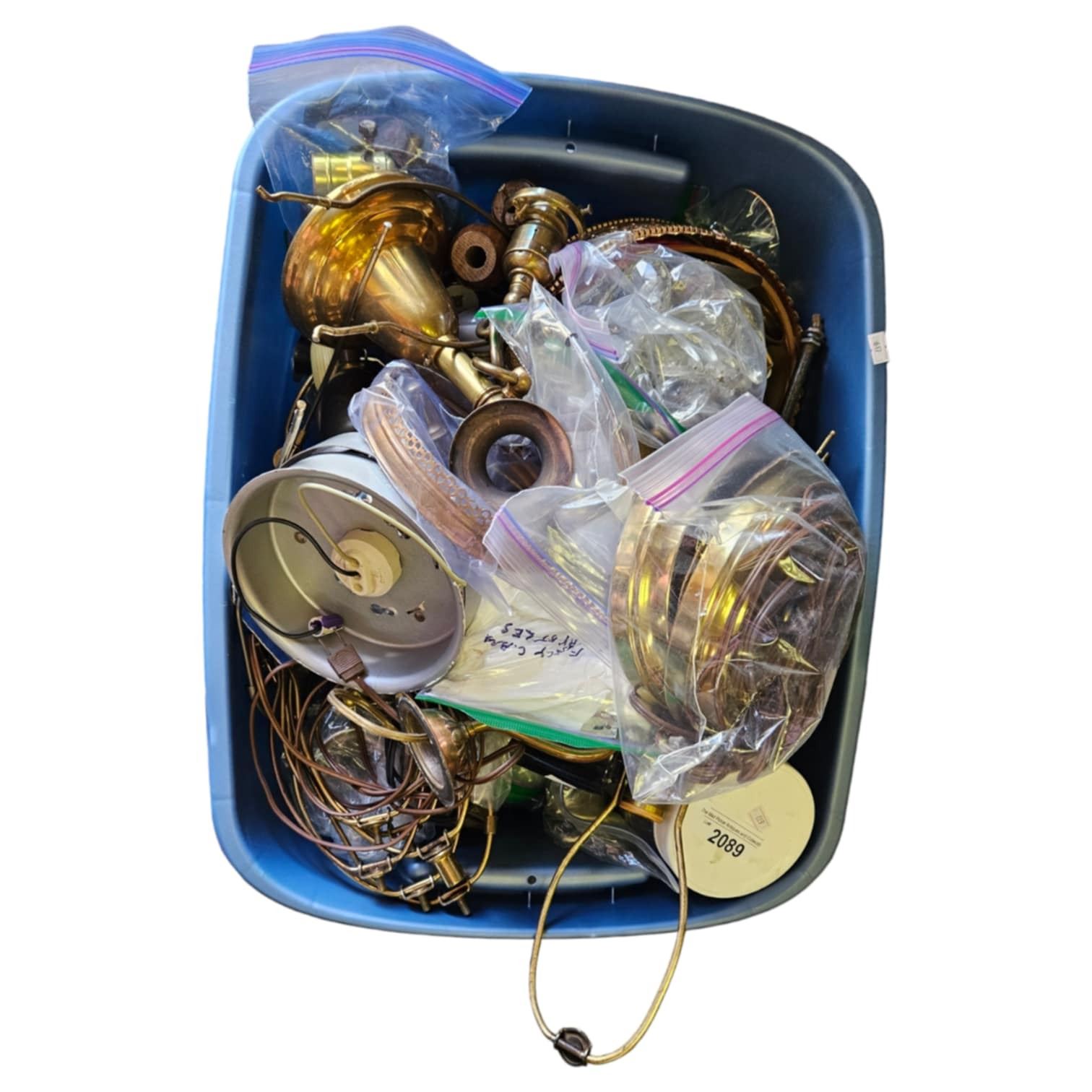 Large Bin Of Assorted Lamp Related Parts: Harps, Top Screws, Transitions, & More