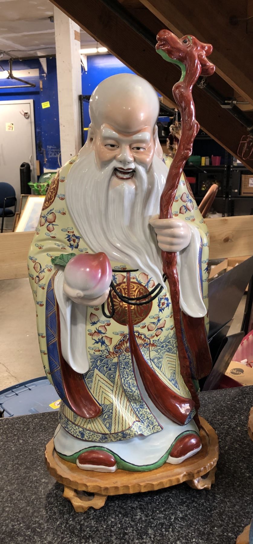 Large Chinese vintage porcelain Shou Xing figurine - approx 24" height