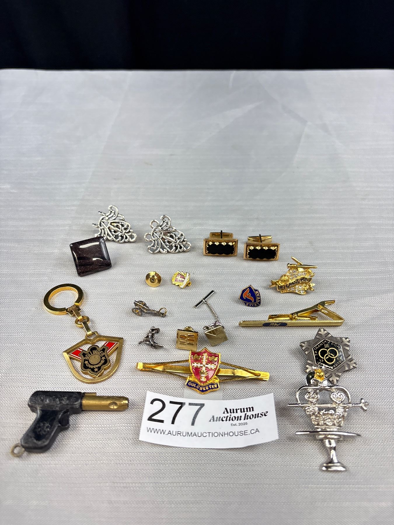 Large Collection of Vintage Tie Bars, Tie Pins, Cuff Links, Keychain Pins, Etc.