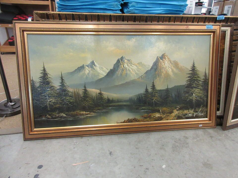 Paint on canvas. Exterior framed dimensions are 55" x 30".