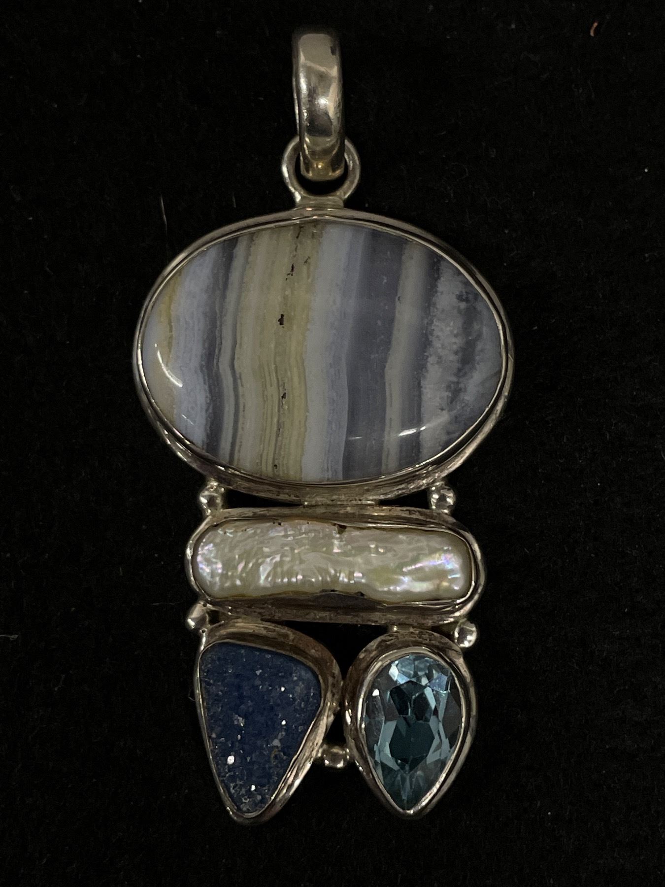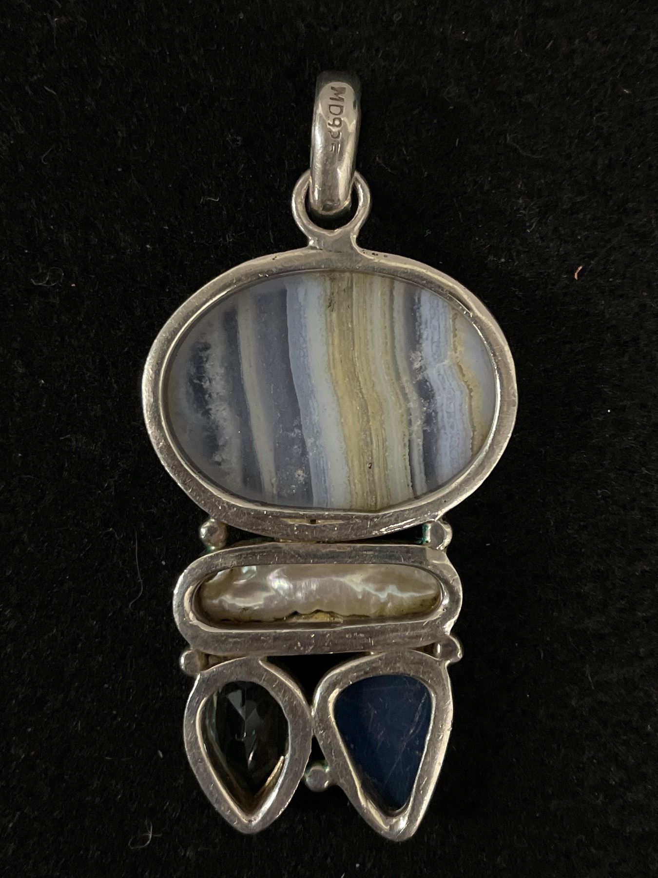 Large Heavy Sterling Silver (Tested) Pendant w/ Genuine Pearl + Gem Stones, Marked MD 925