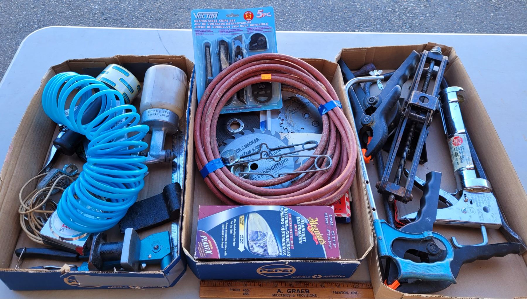 Large Lot Of Misc. Tools Including Jacks, Chalking Guns & Air Hoses