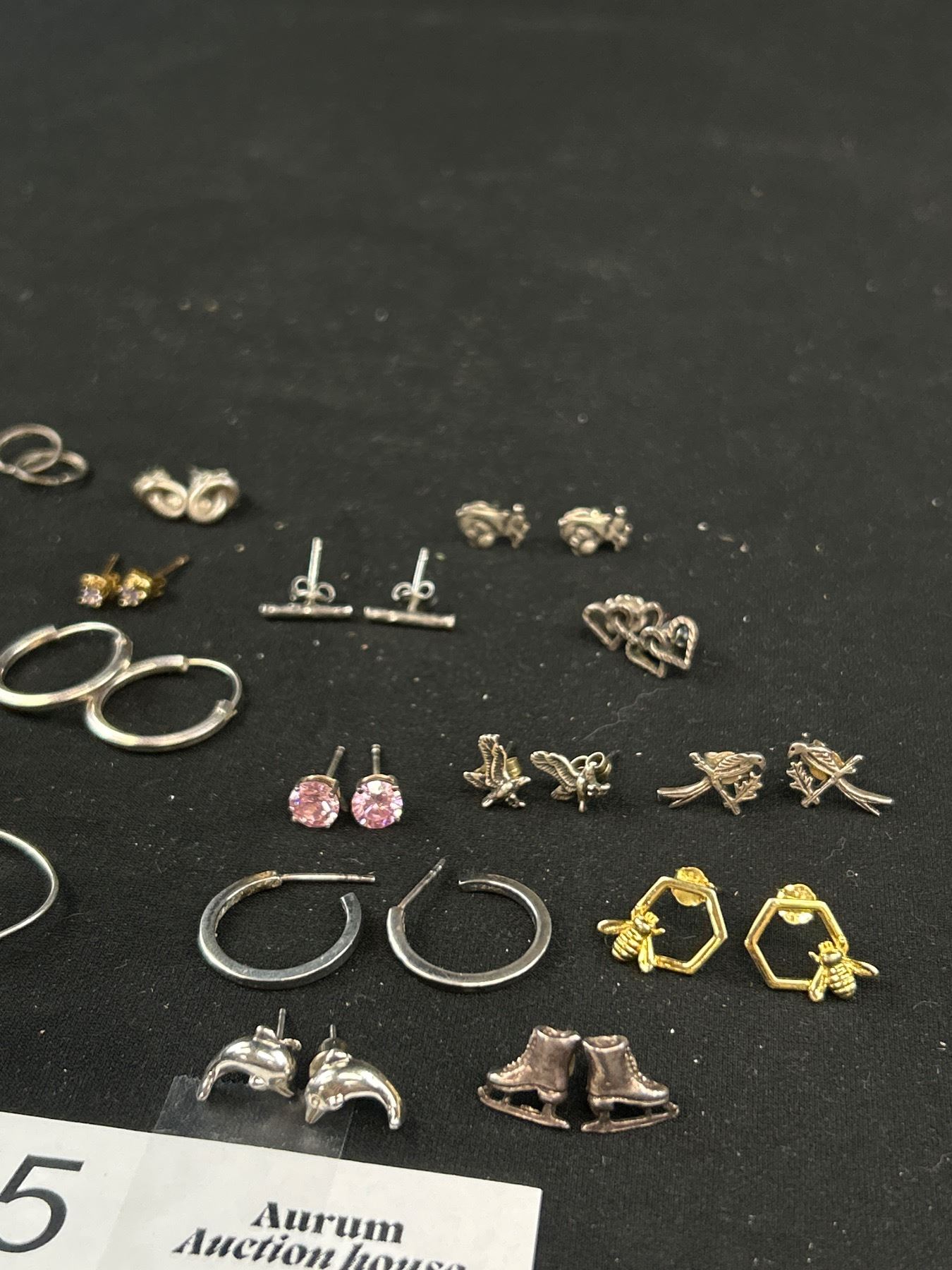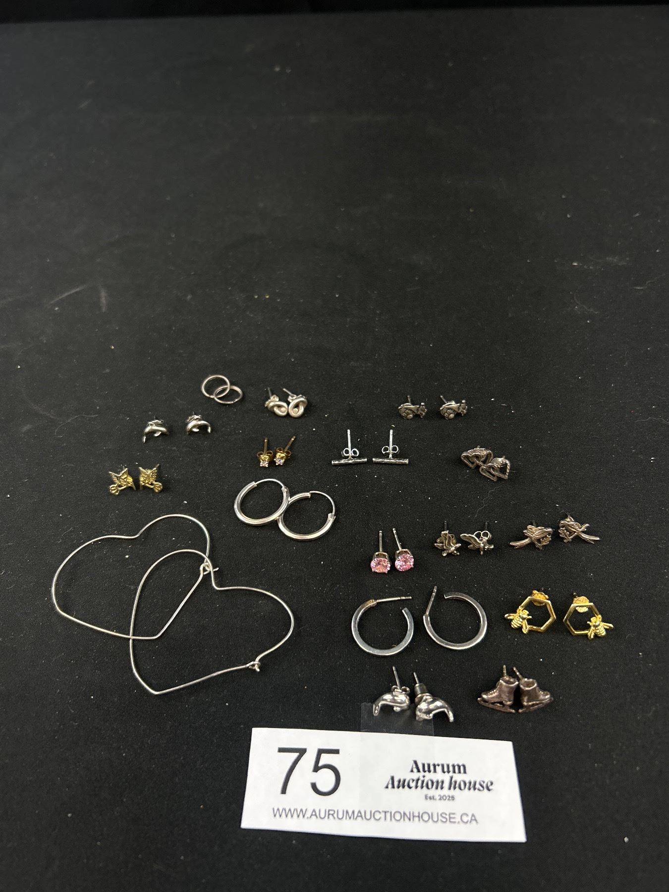 Large Lot Vintage Sterling Silver Earrings Quality! Bees, Whale, Hummingbird, Gemstones, Dogs etc