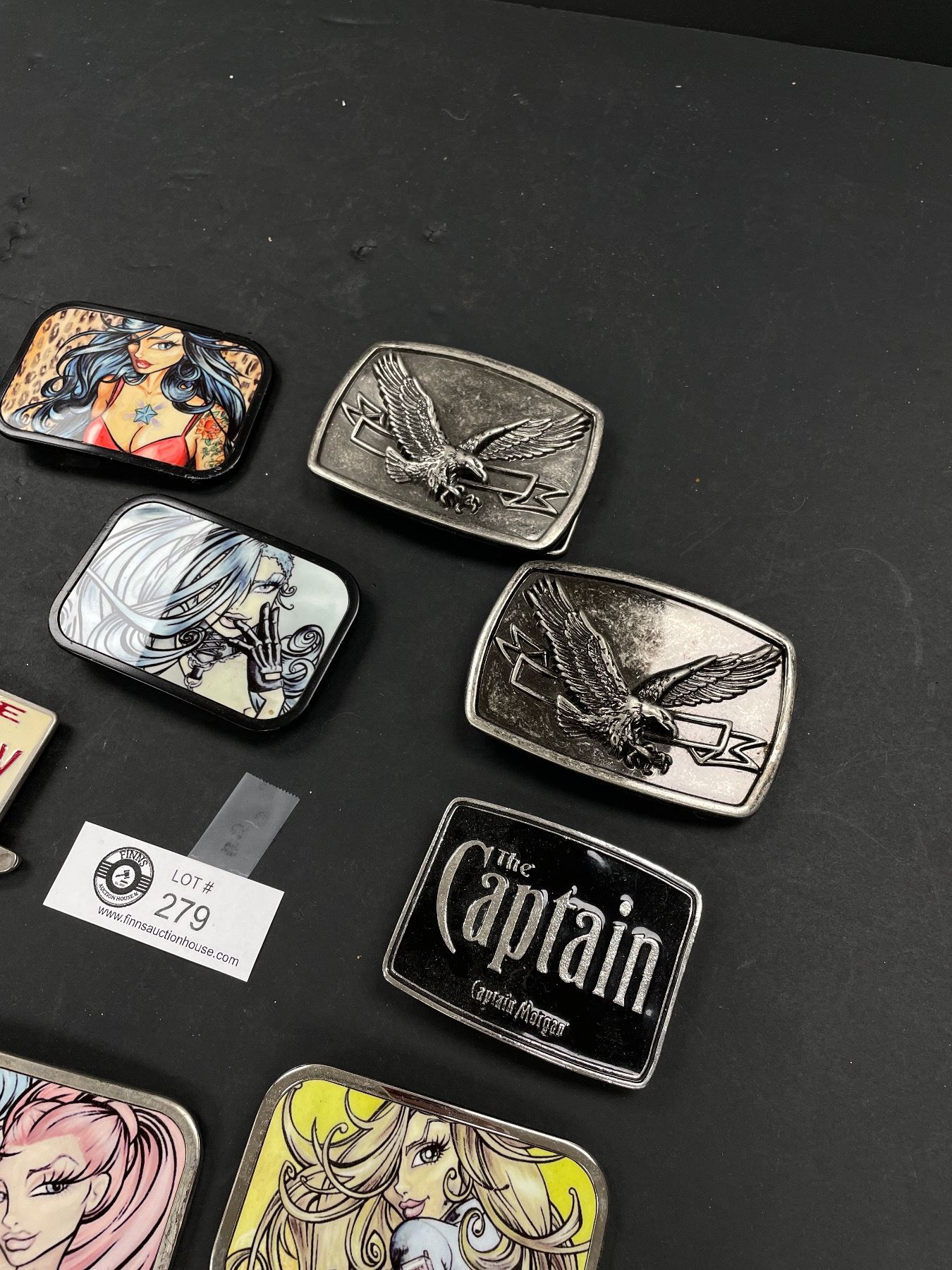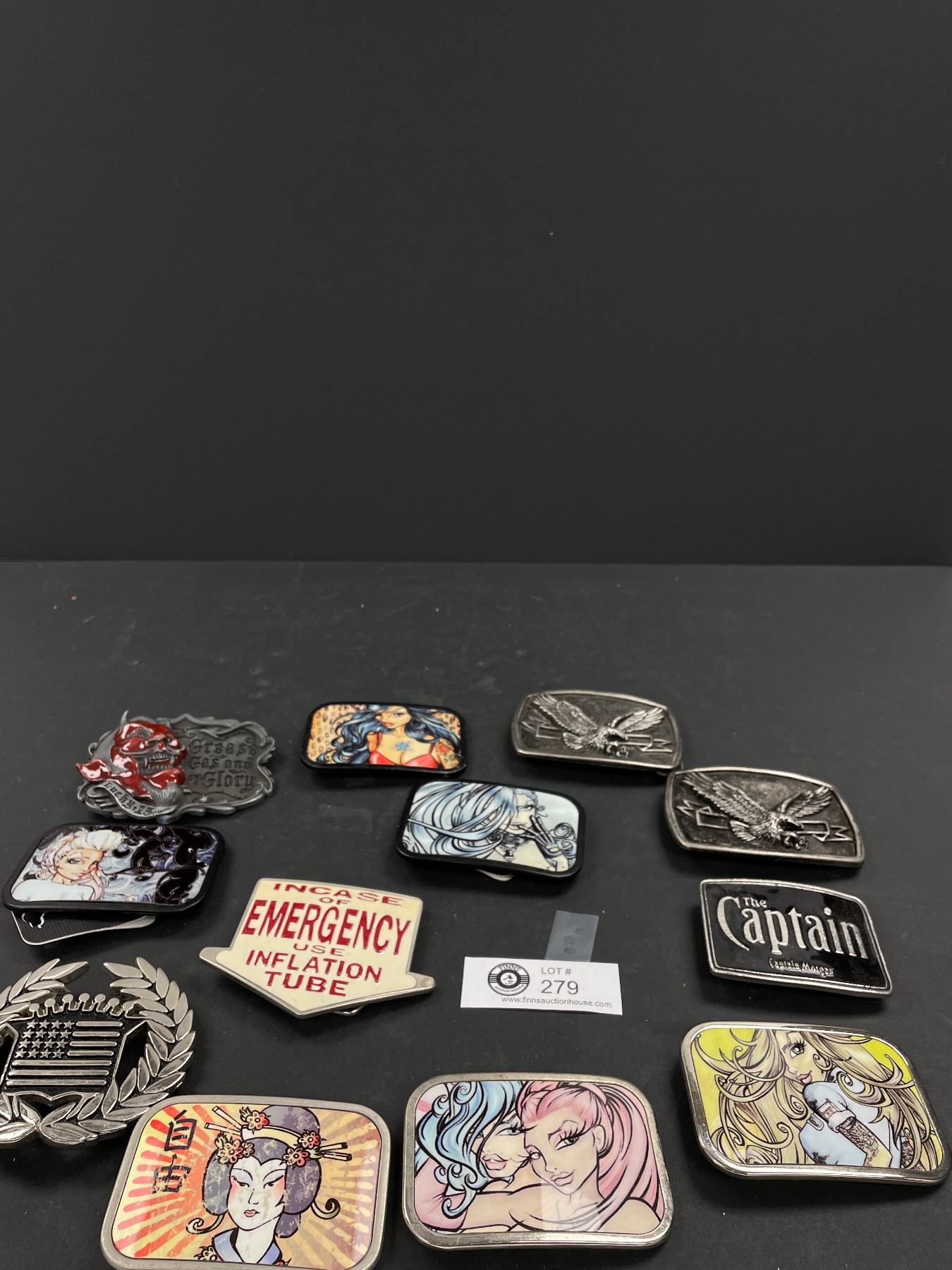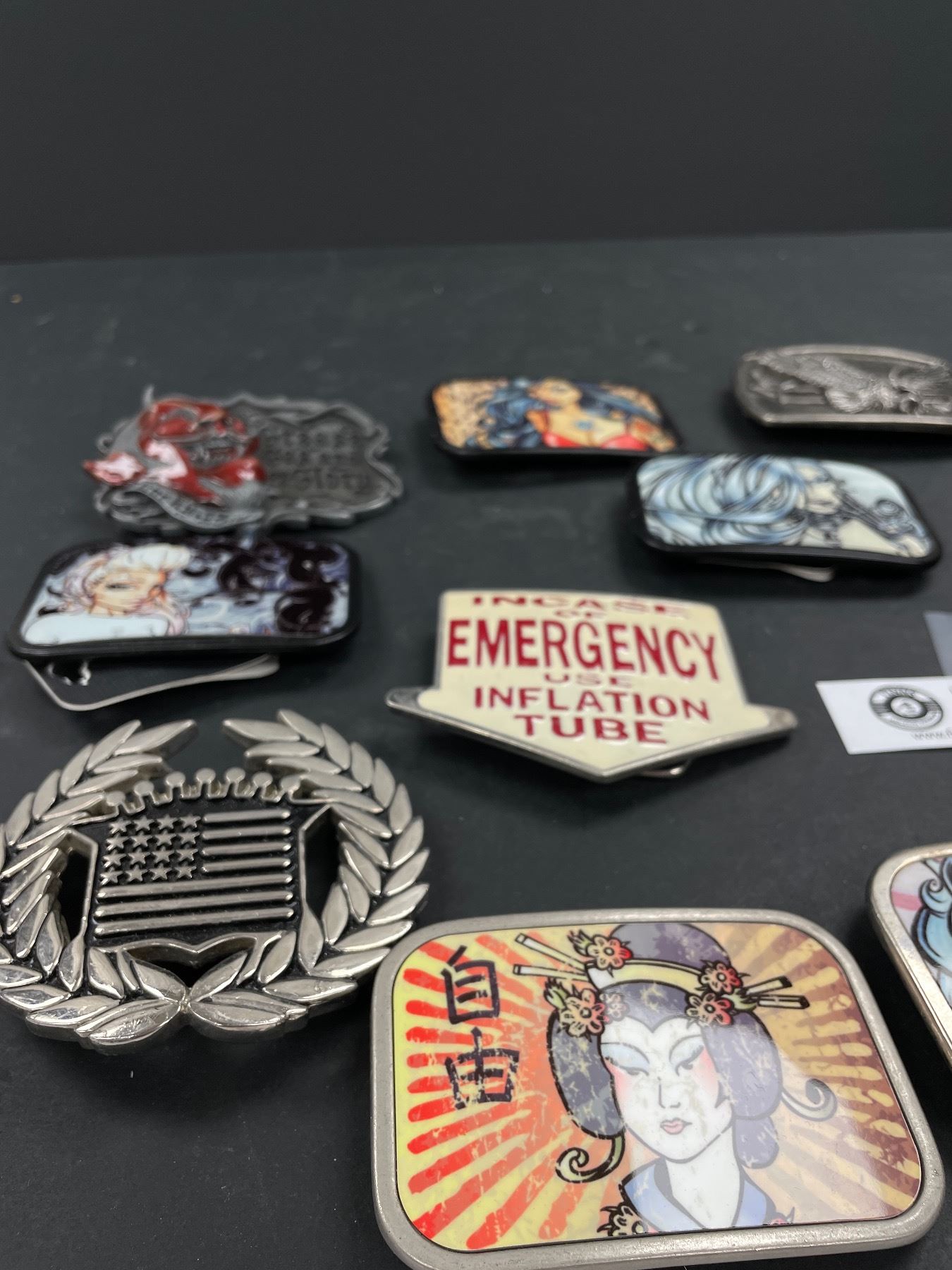Large Lot of Belt Buckles Cadillac Novelty Etc