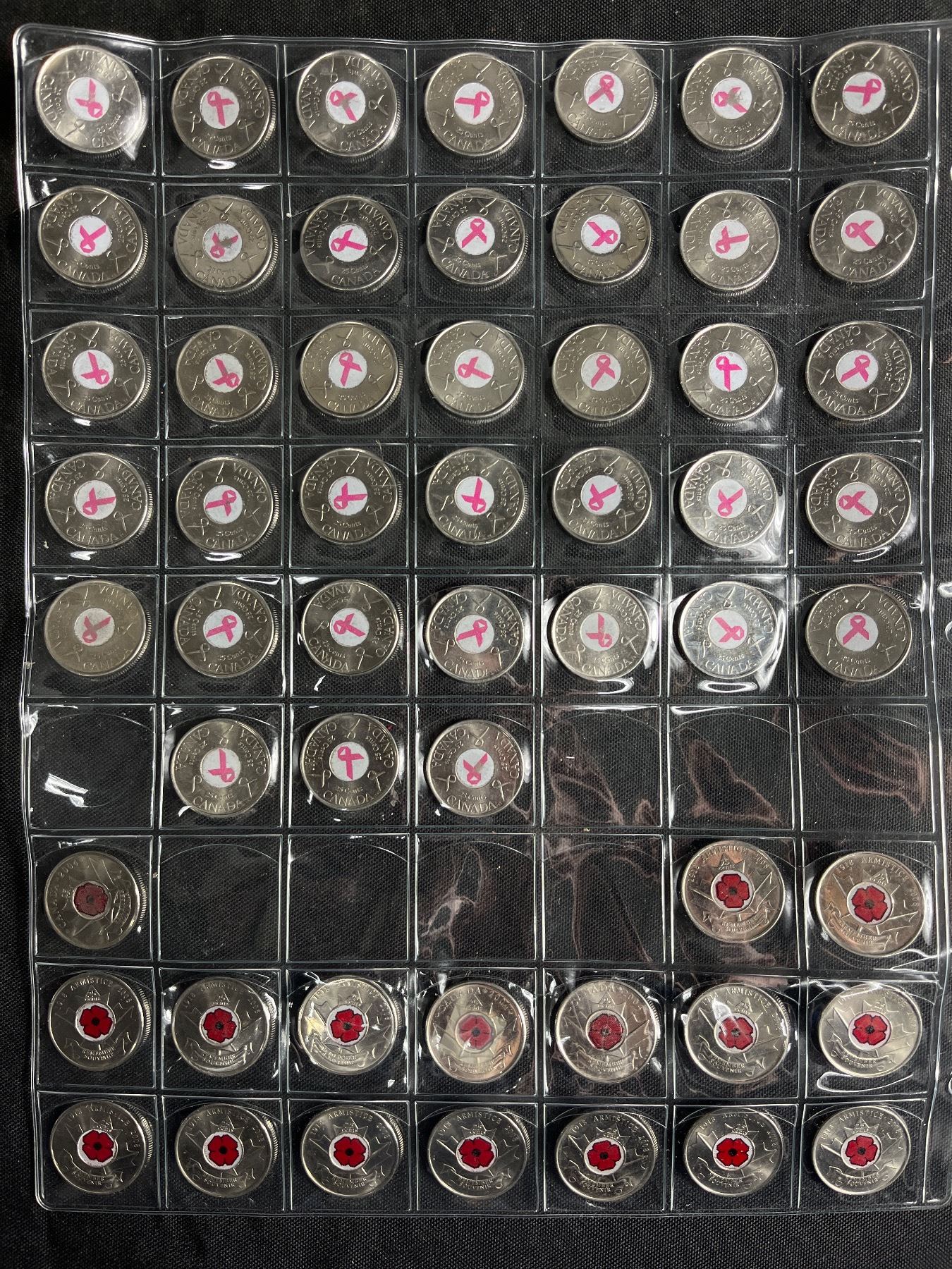 Large Lot of Royal Canadian Mint Breast Cancer and Poppy Quarters