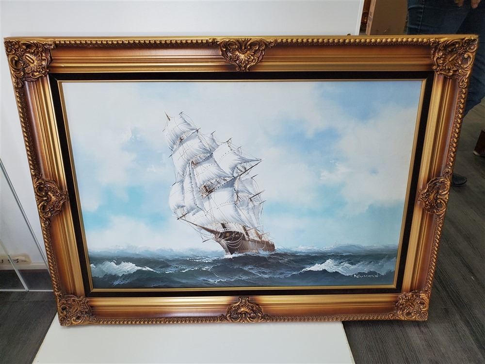 Large Oil Painting of Ship signed Most Items have not been tested - 17% Buyer Fee. Payment Processed through Live Auction World ( Visa or Master Card ) pick up Saturday, or Tuesday