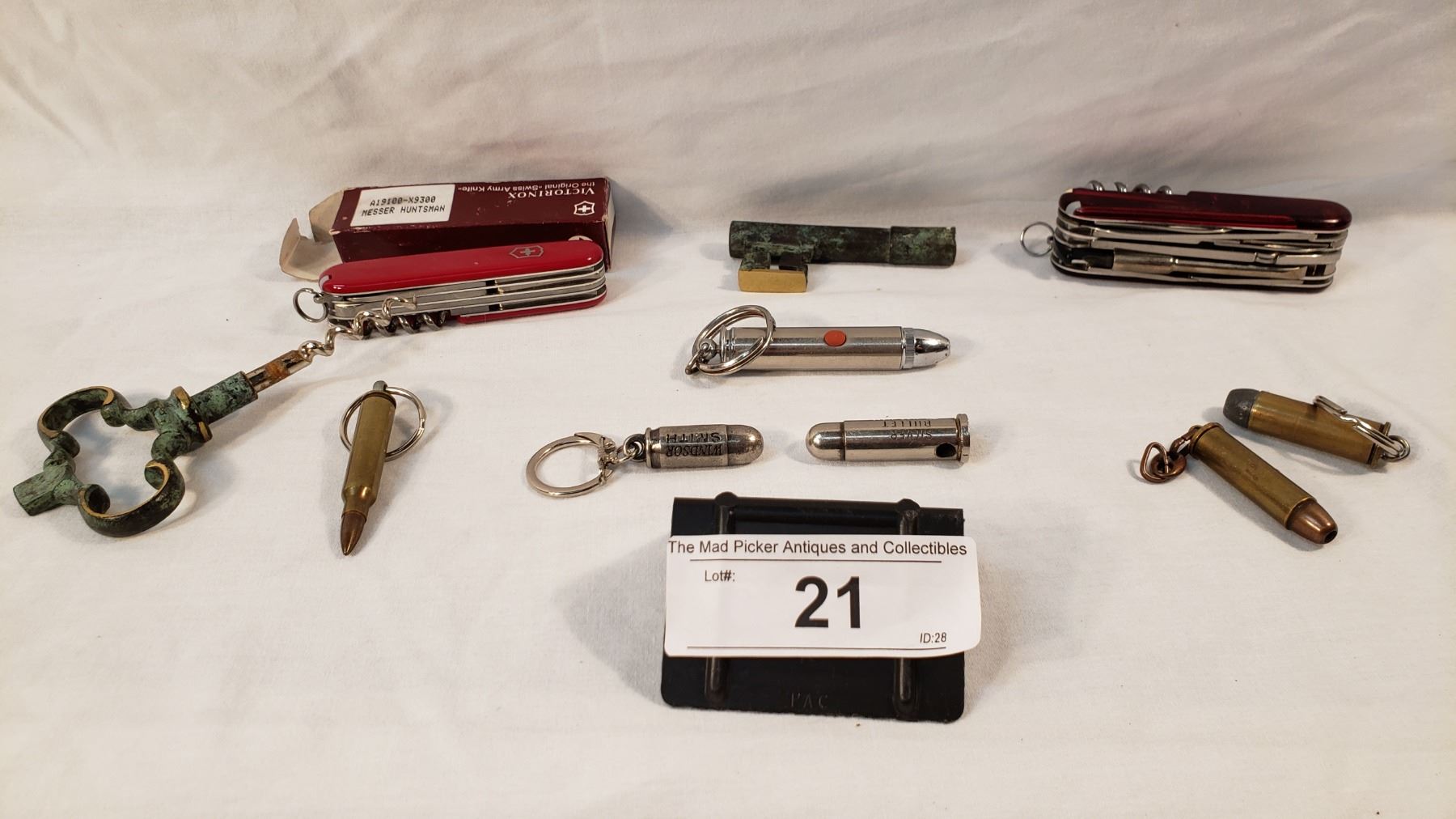 Large Pair Of Swiss Army Knives. Bullet Key Chains. Large Vintage Cork Crew