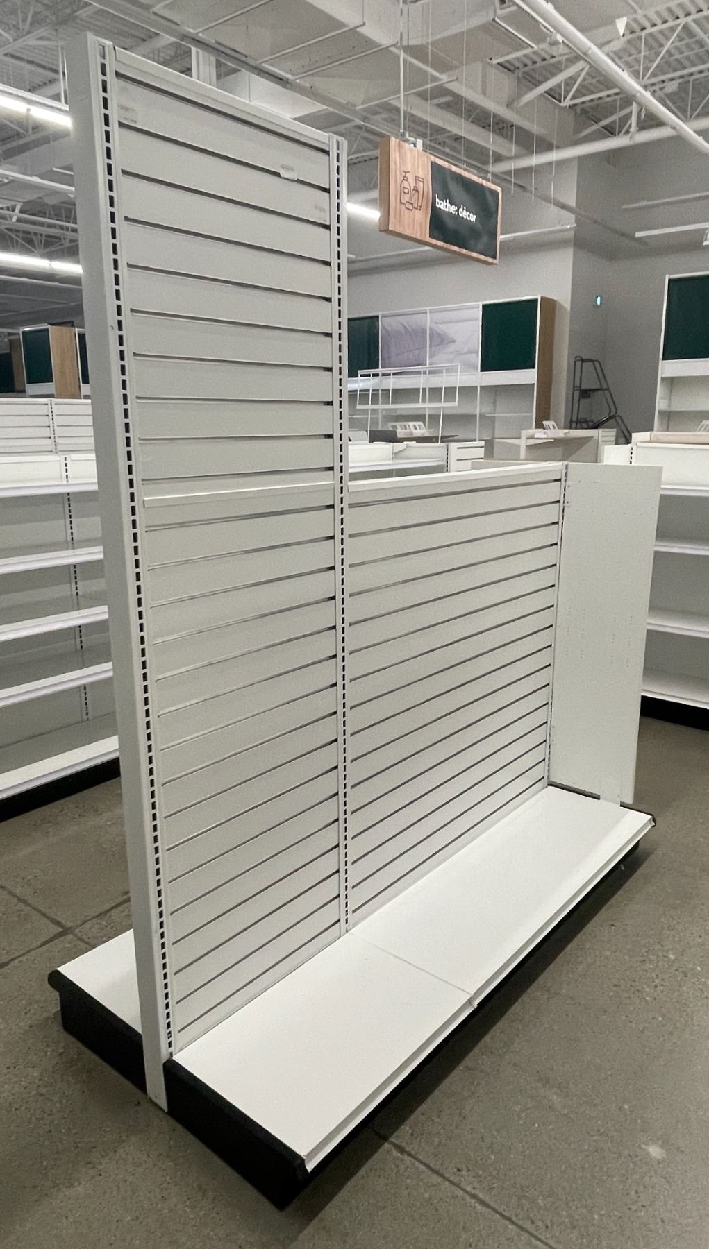 Large Slatwall retail unit (approx. 74in W 85in H 35in D - excellent condition - Madix brand) BIDDERS ARE RESPONSIBLE FOR ALL COSTS ASSOCIATED WITH PICKUP OF THEIR LOTS INCLUDING BUT NOT LIMITED TO RENTAL OF EQUIPMENT, FORKLIFTS, LABOUR, TRUCKING, TOOLS ETC.