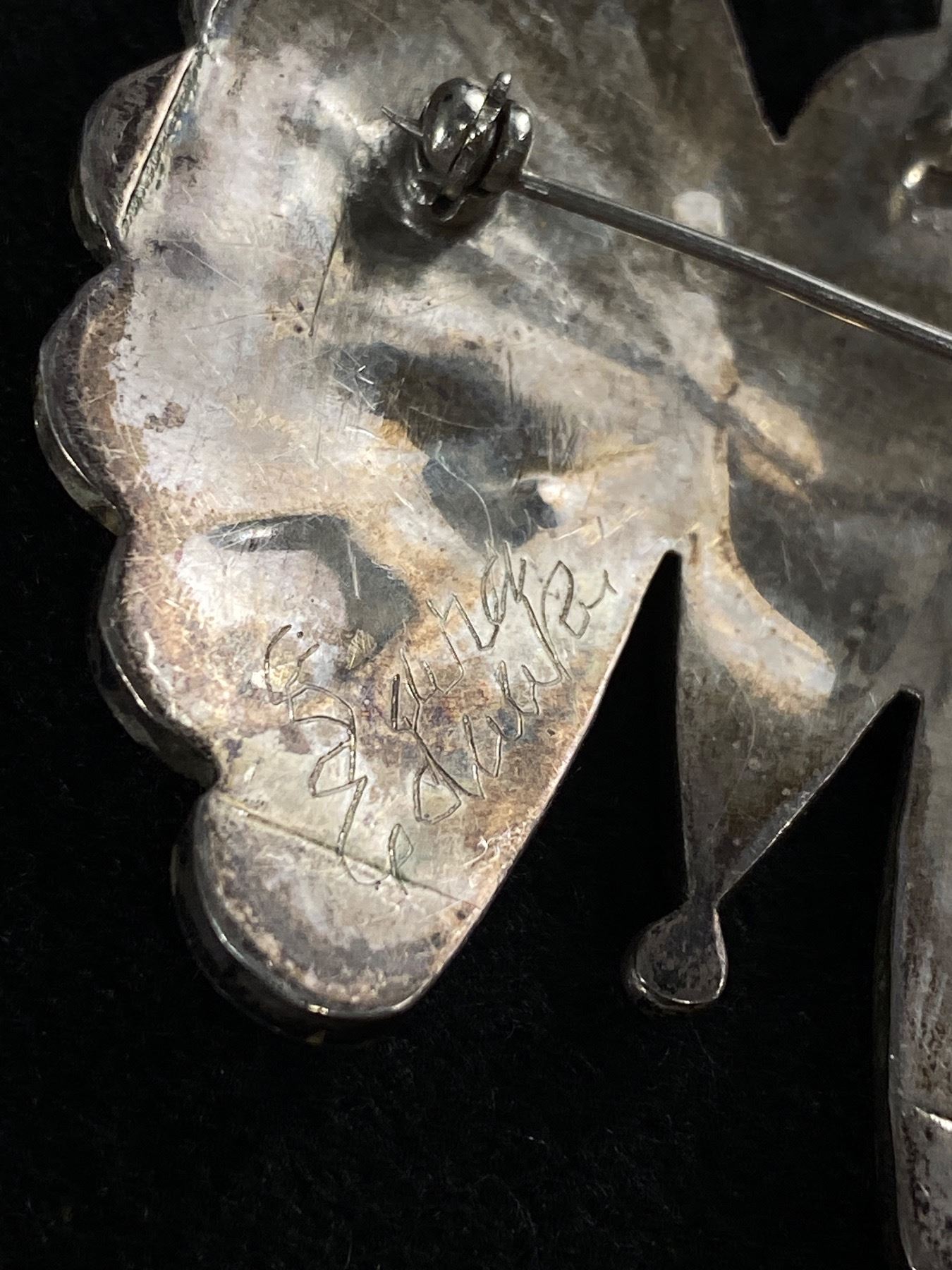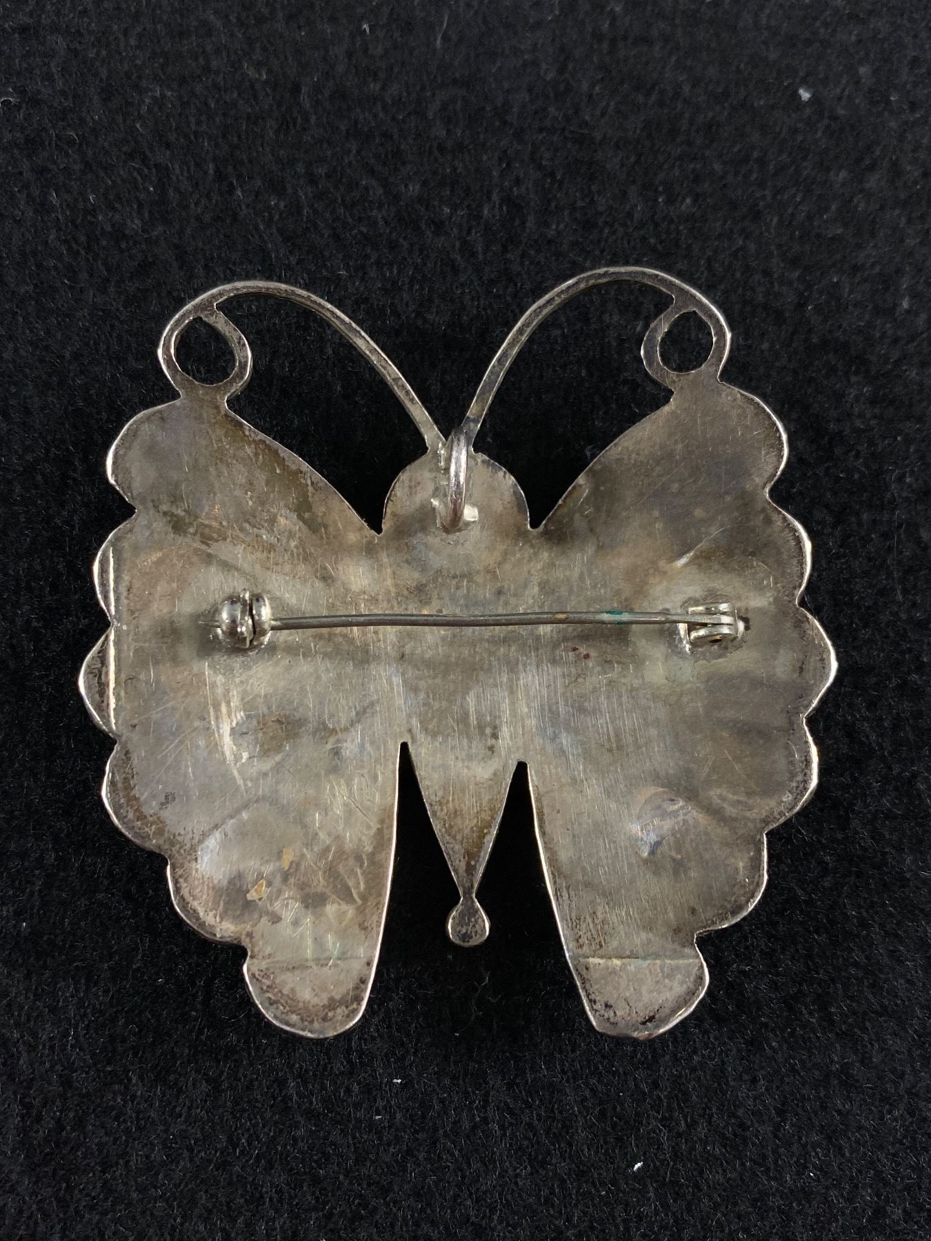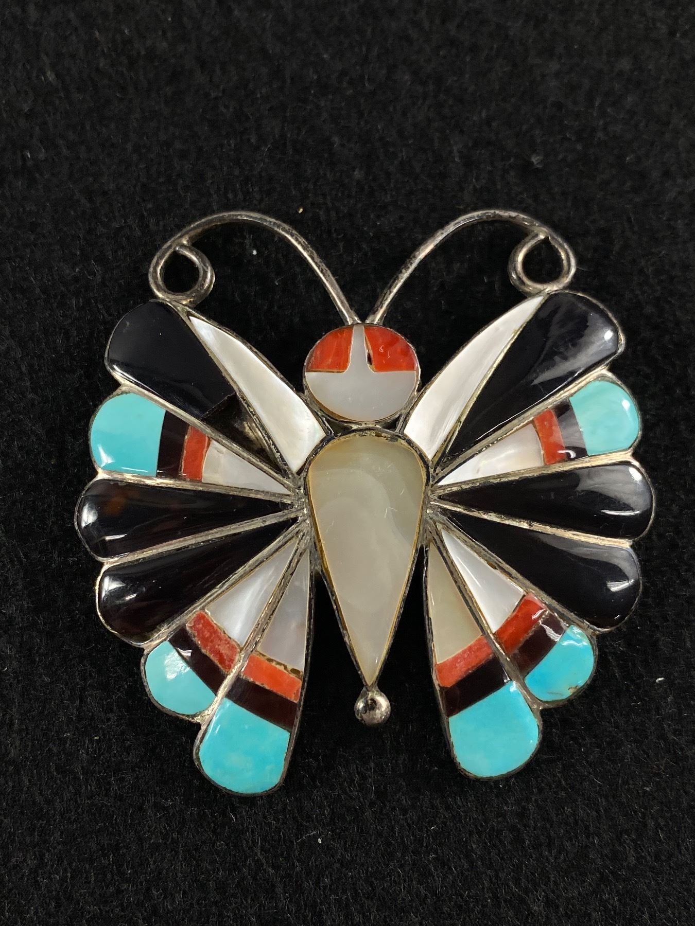 Large Sterling Silver Native American Butterfly Brooch, Inlaid w/Mother of Pearl and Turqouis onyx Has Both Pendant and Pins