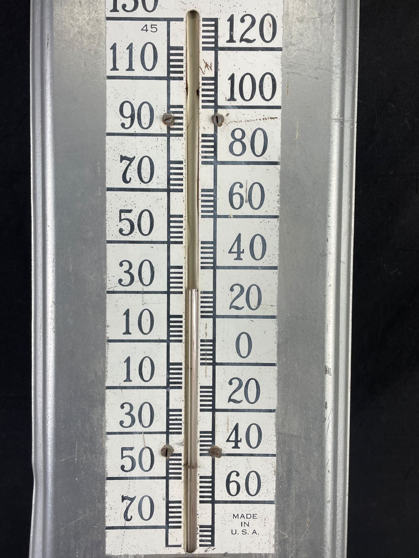 Large Vintage Metal Garage Thermometer. (Glass Mercury Needs Replacing) NO SHIPPING Approx. 36" x 8.75"