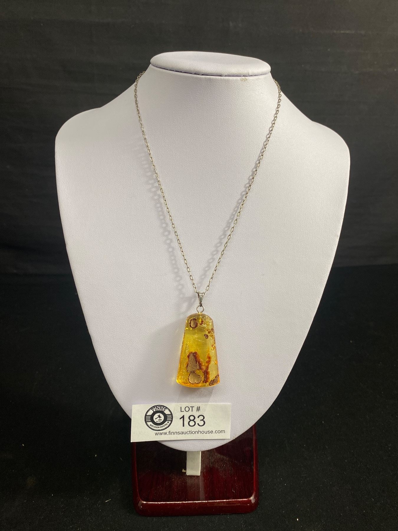 Large Vintage One Side Polished Genuine Amber Chunk Pendant w/U.C Marked Silver Chain