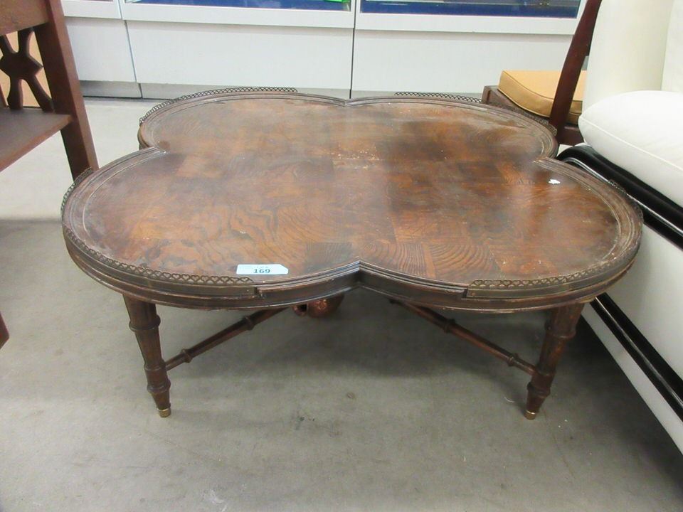 Oak with Metal Edges. 42" x 42" x 18" tall.
