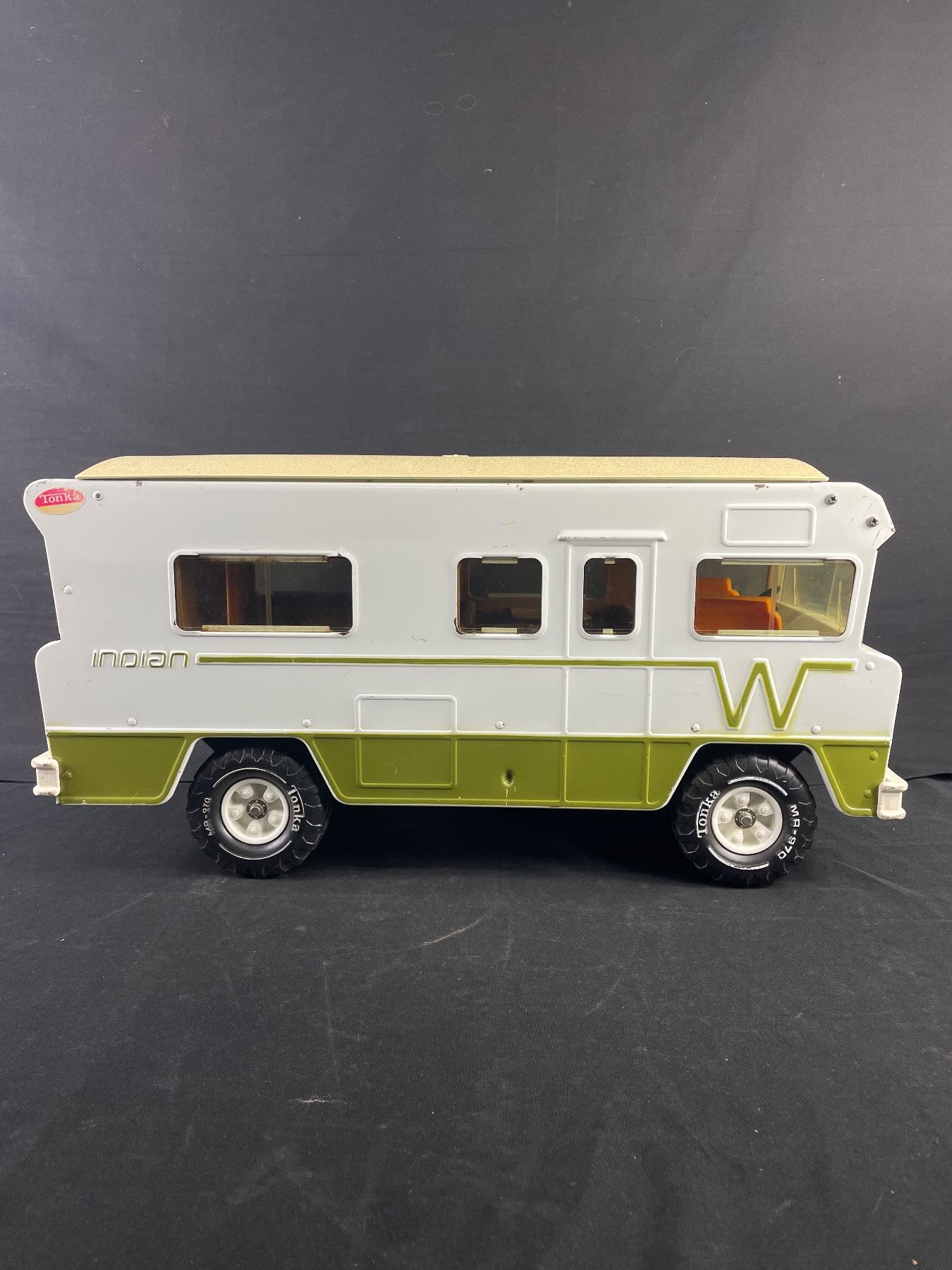Large Vintage Tonka Winnebago Indian RV Steel Camper. Approx. 22"L x 11"H