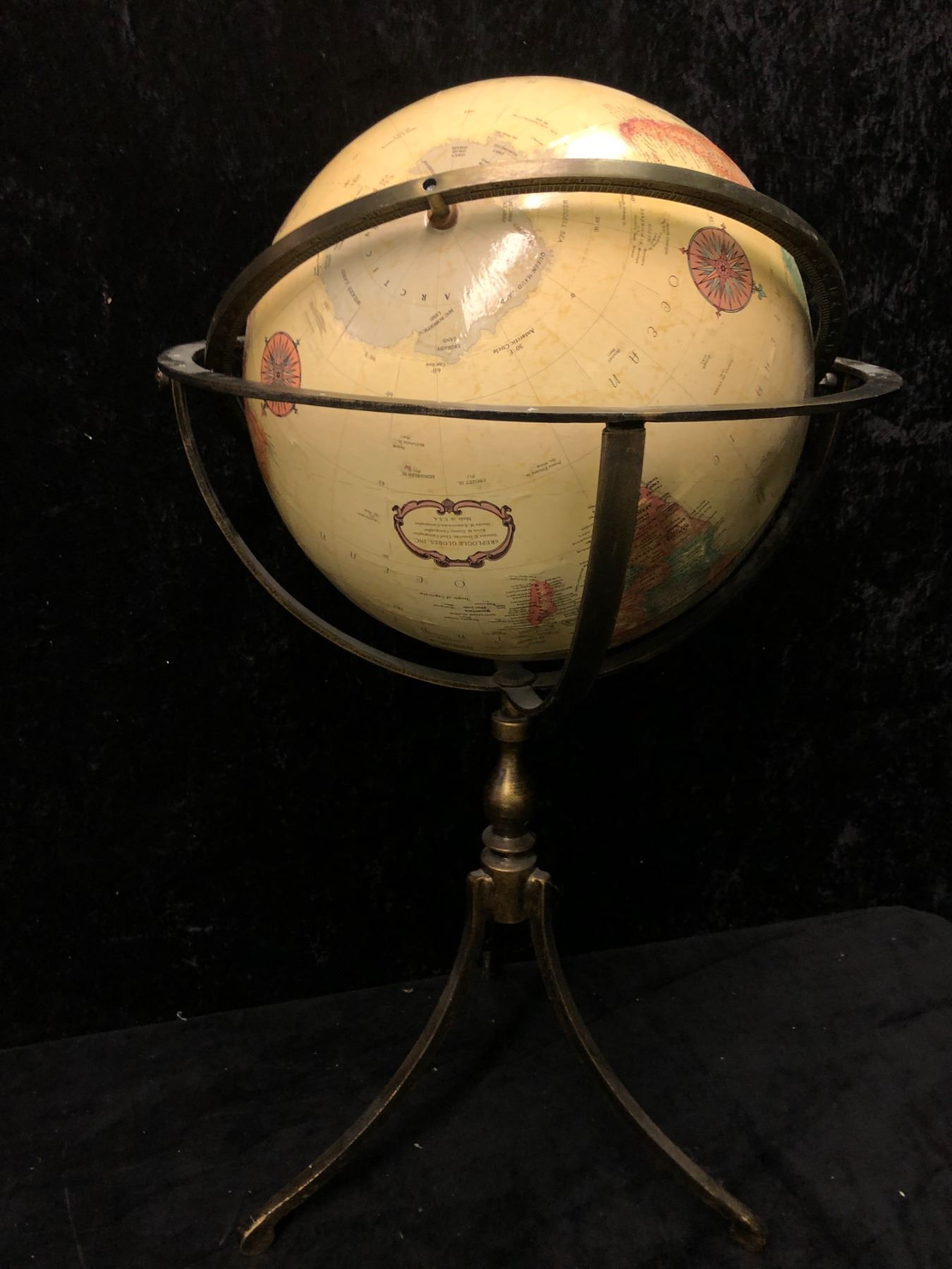 Large World Globe on metal pedestal stand