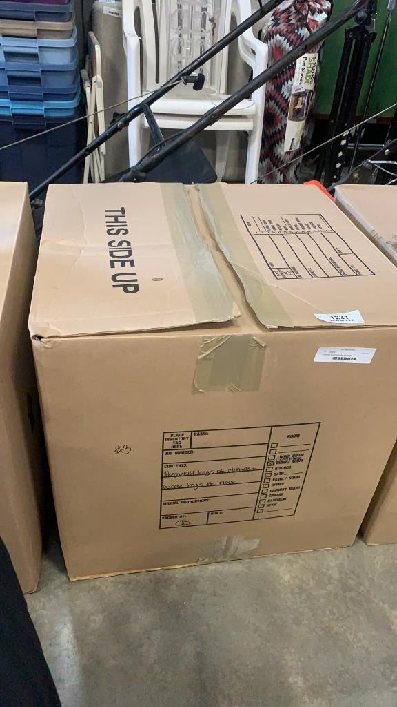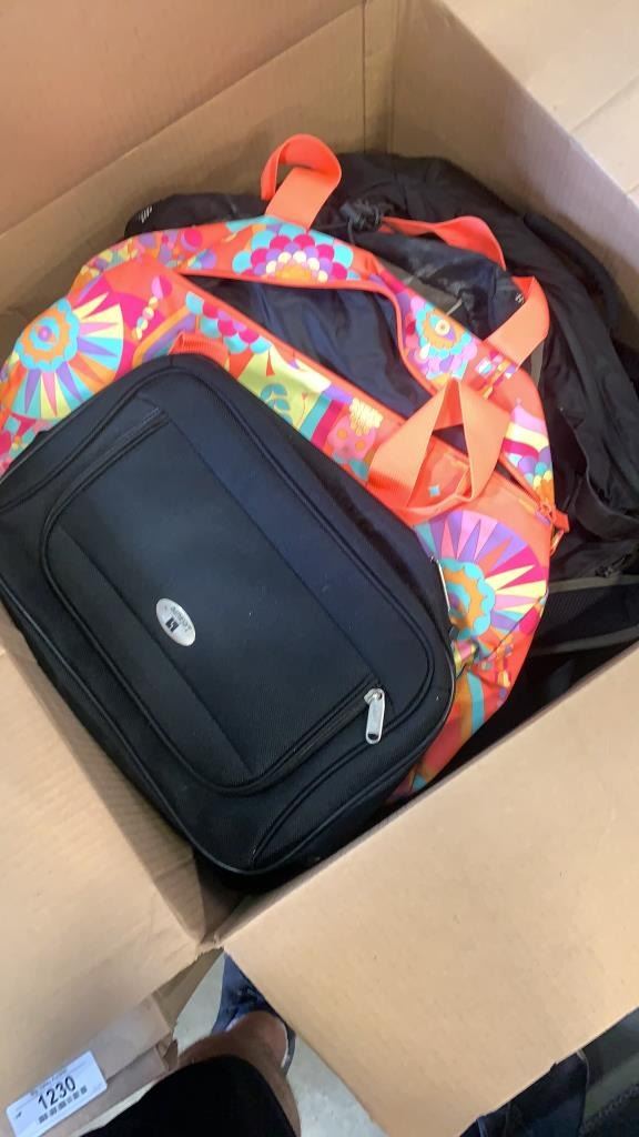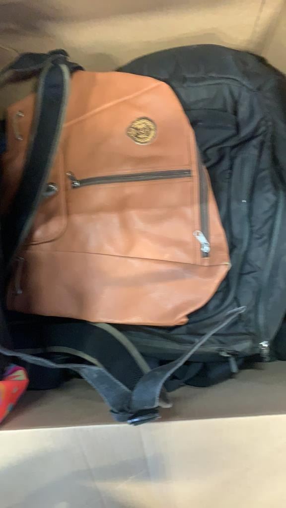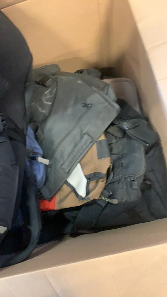 Large box and backpacks and bags