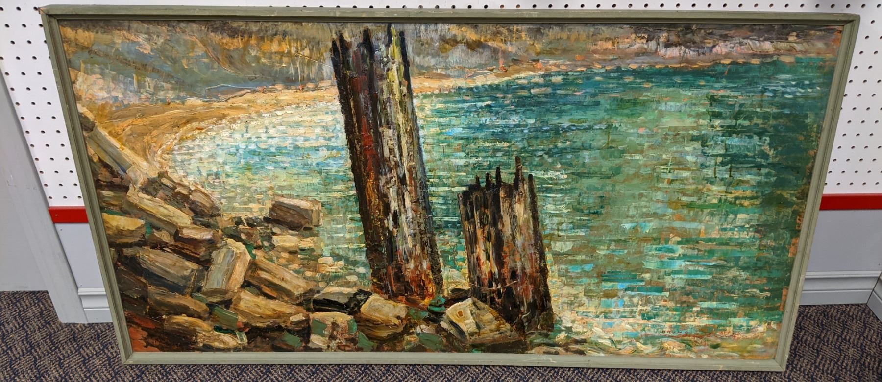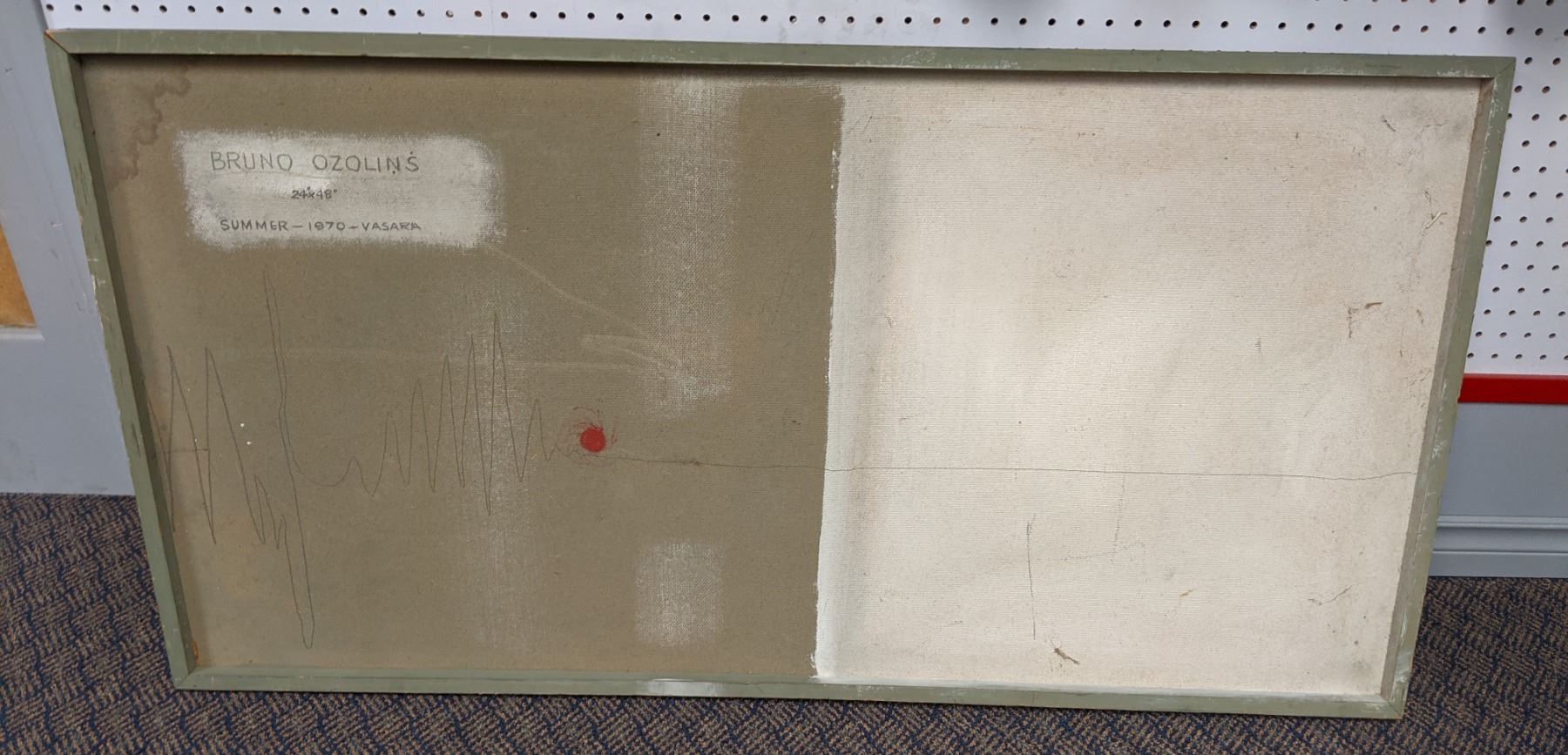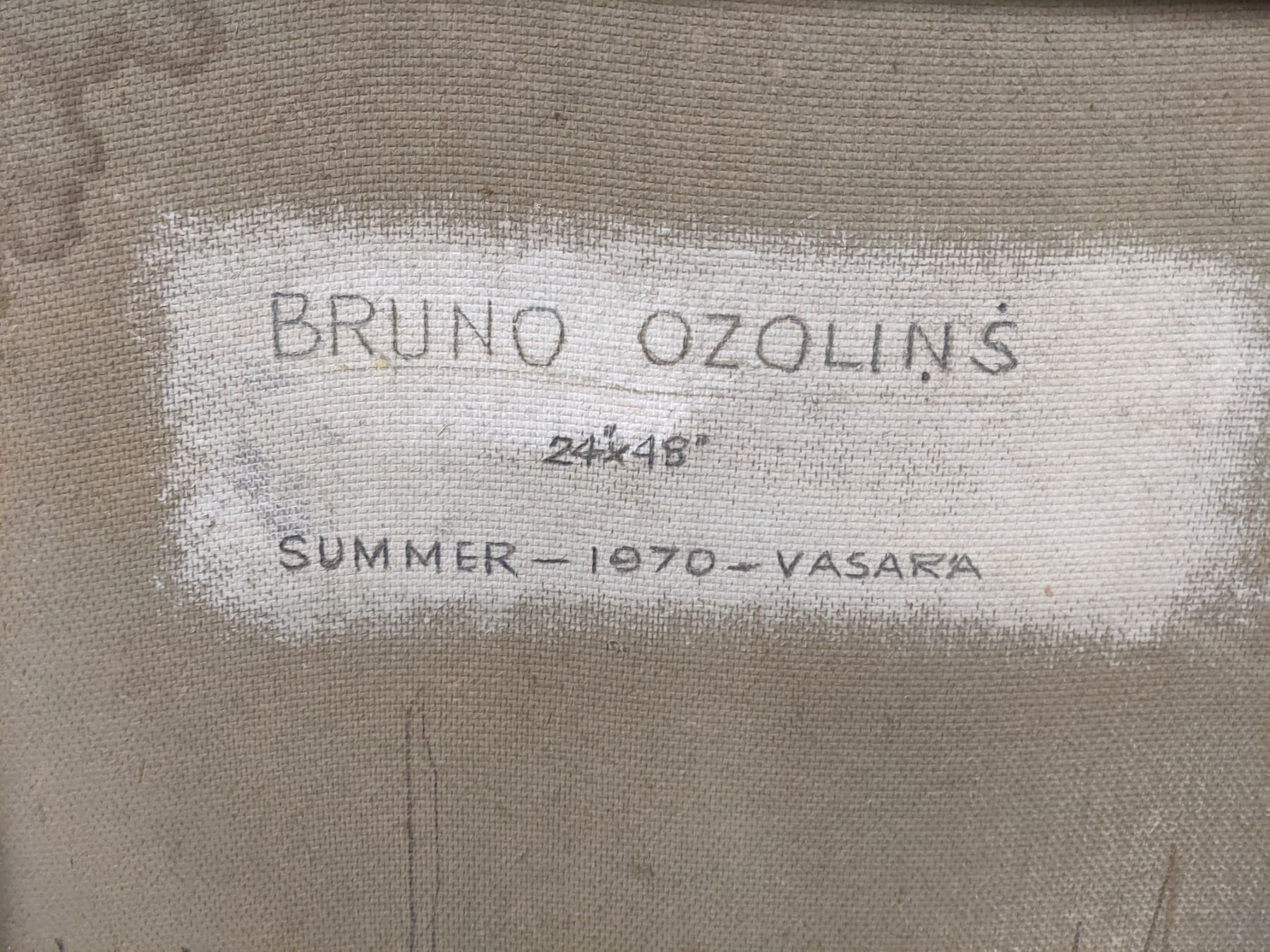 Large framed oil on board impressionist style painting by artist Bruno Ozolins "Summer-1970-Vasara" - 24in x48in