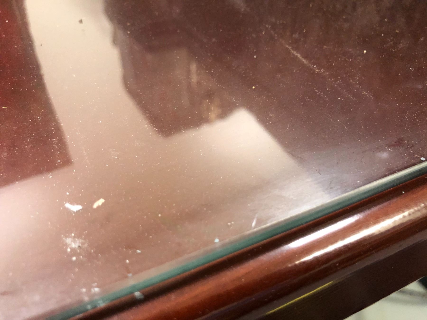 a Large glass top boardroom table approx. 10ft x 5ft. from the show
