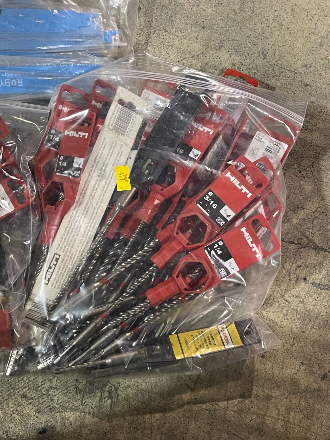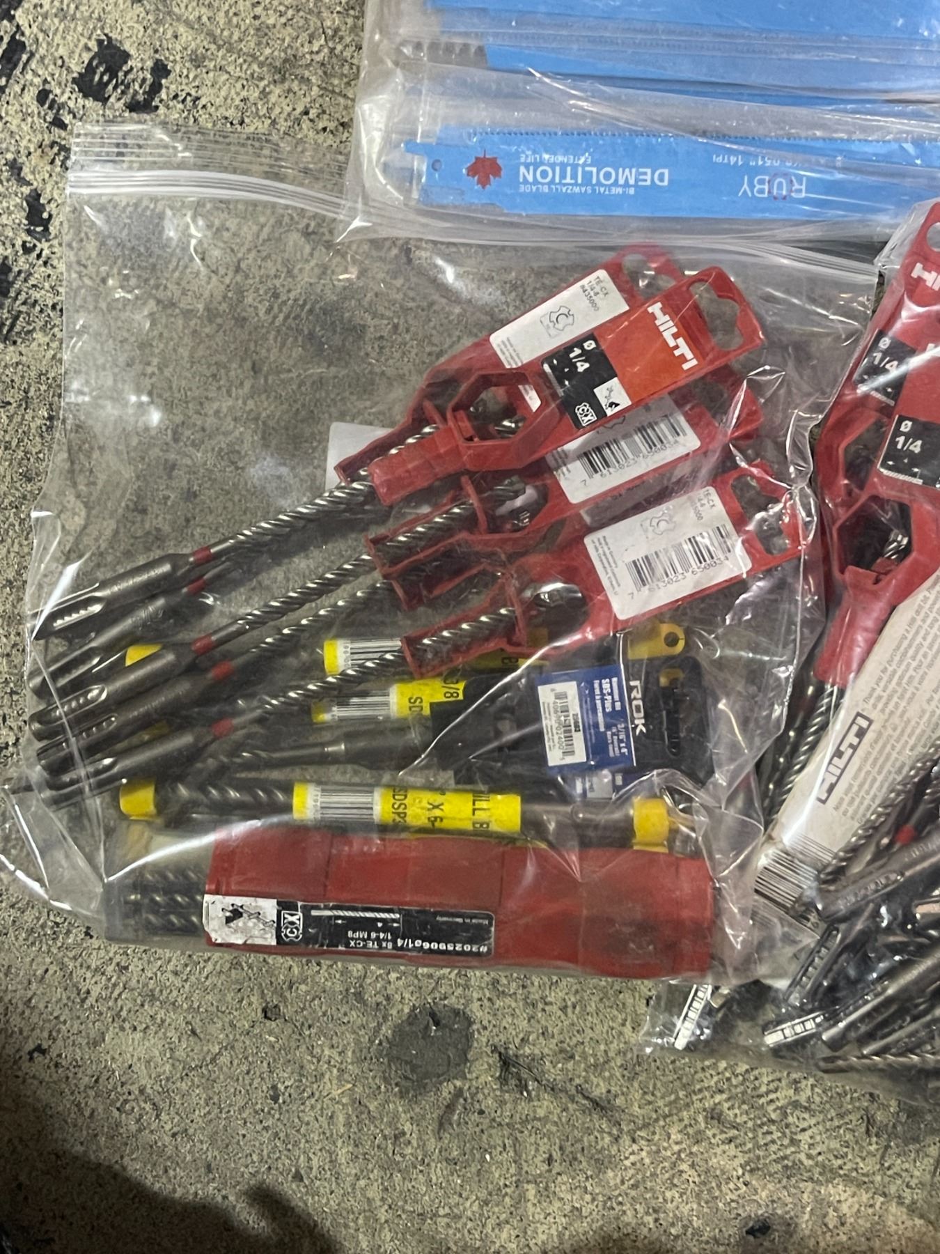 Large group of Hilti Drill Bits, ROK Hammer bits and Ruby Demolition Reciprocating Saw Blades