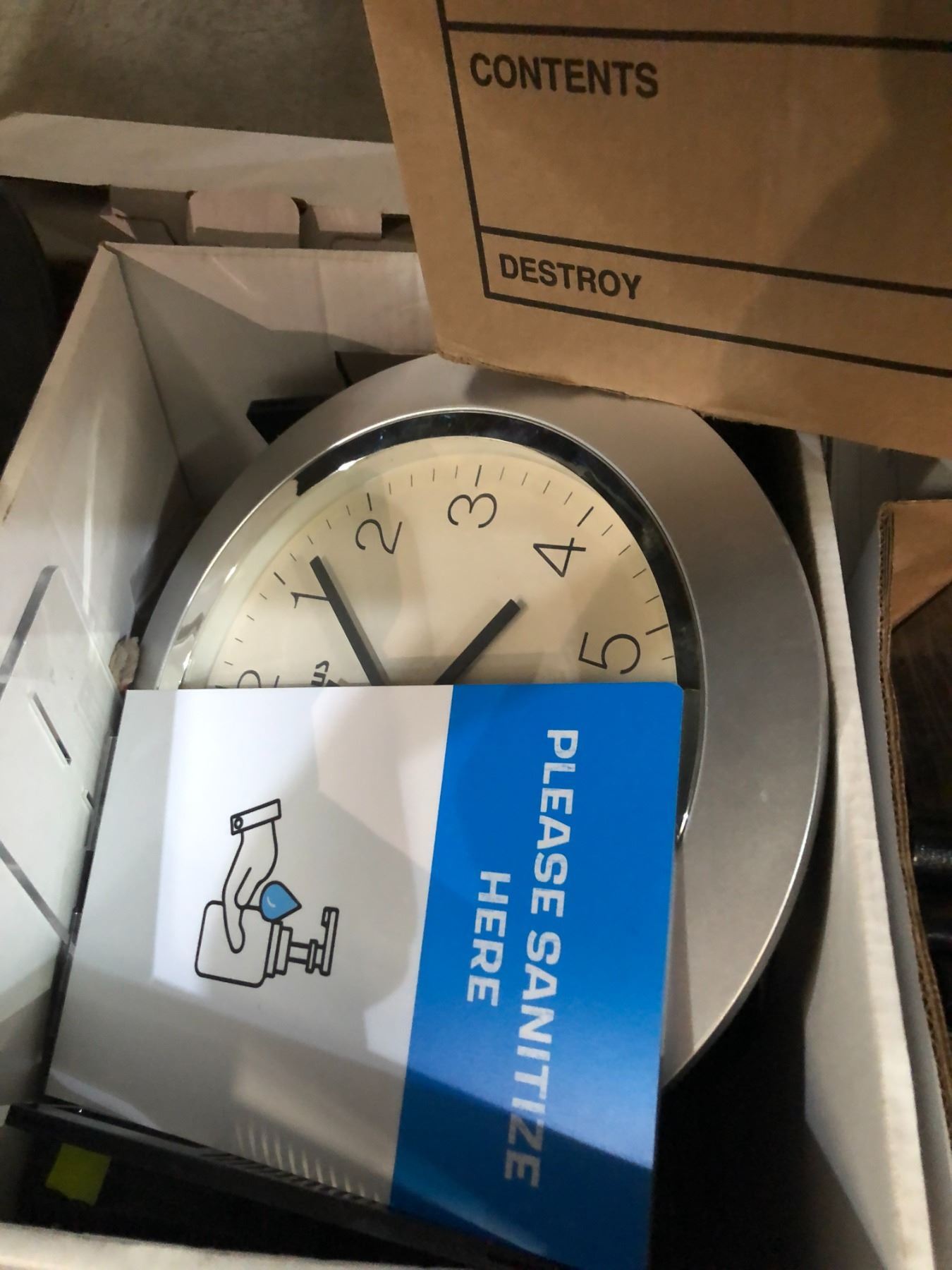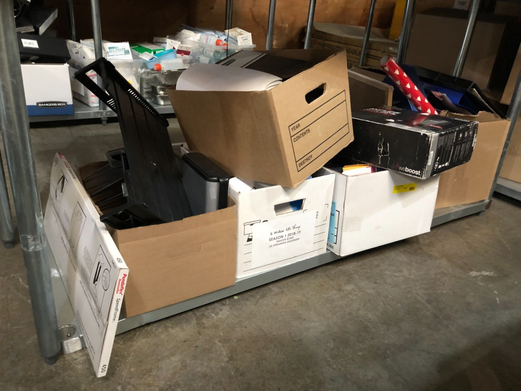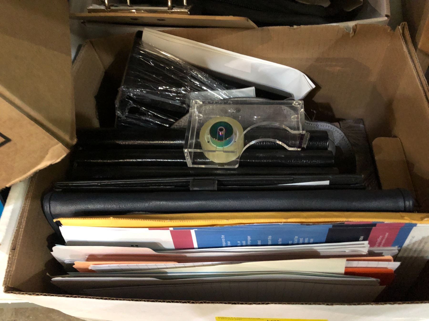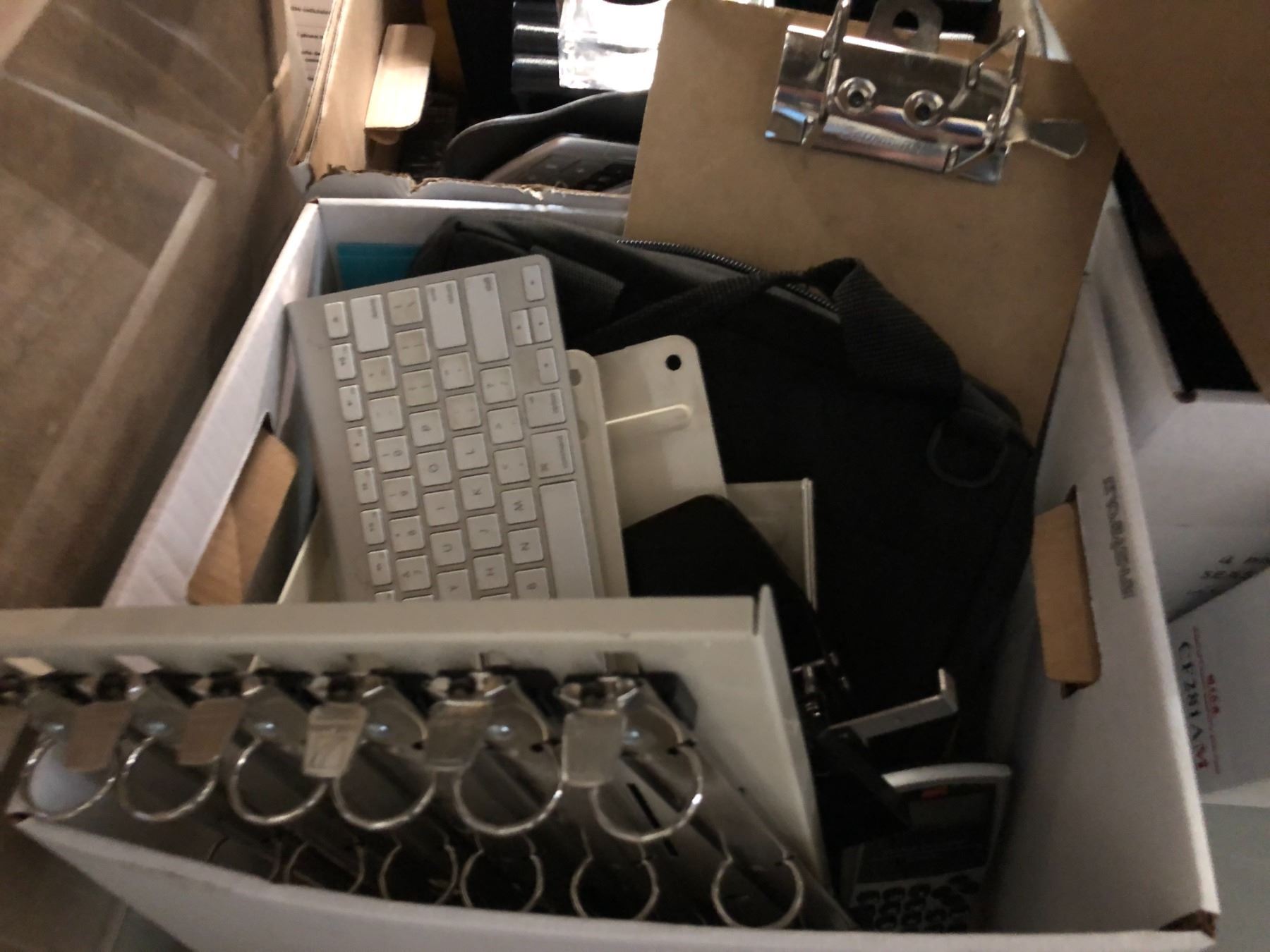 Large group of Misc. Office Items - Includes Staples File holder/File Clip Boards/ Key board/ Office bags/ Clock/Hanging Folder Frame etc.