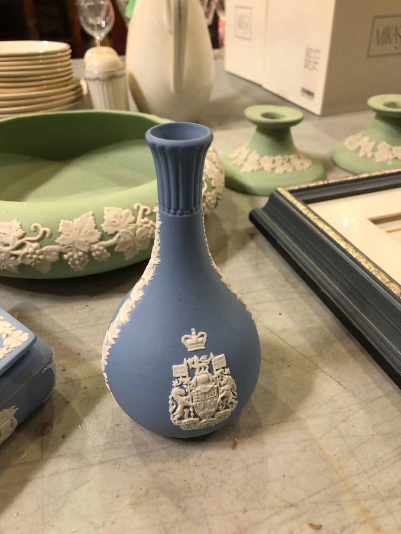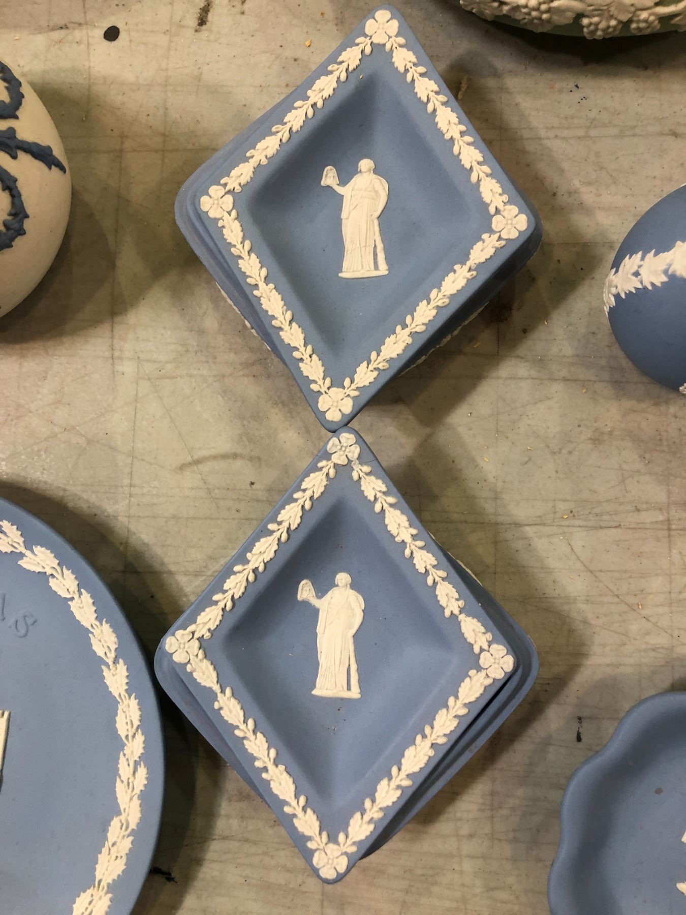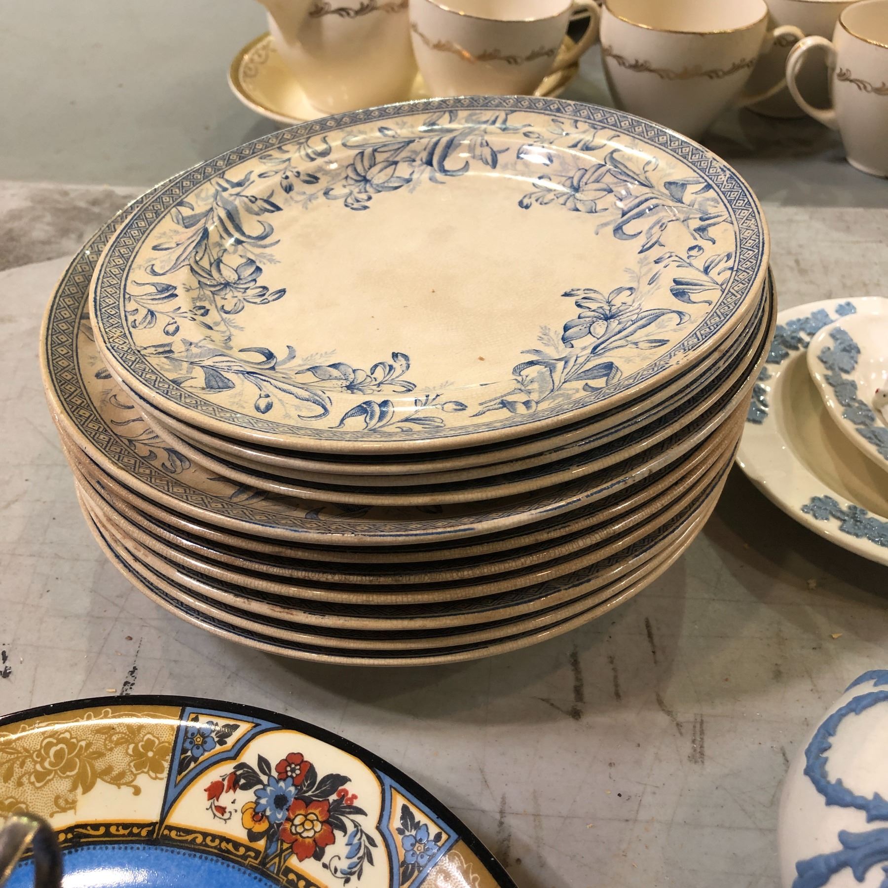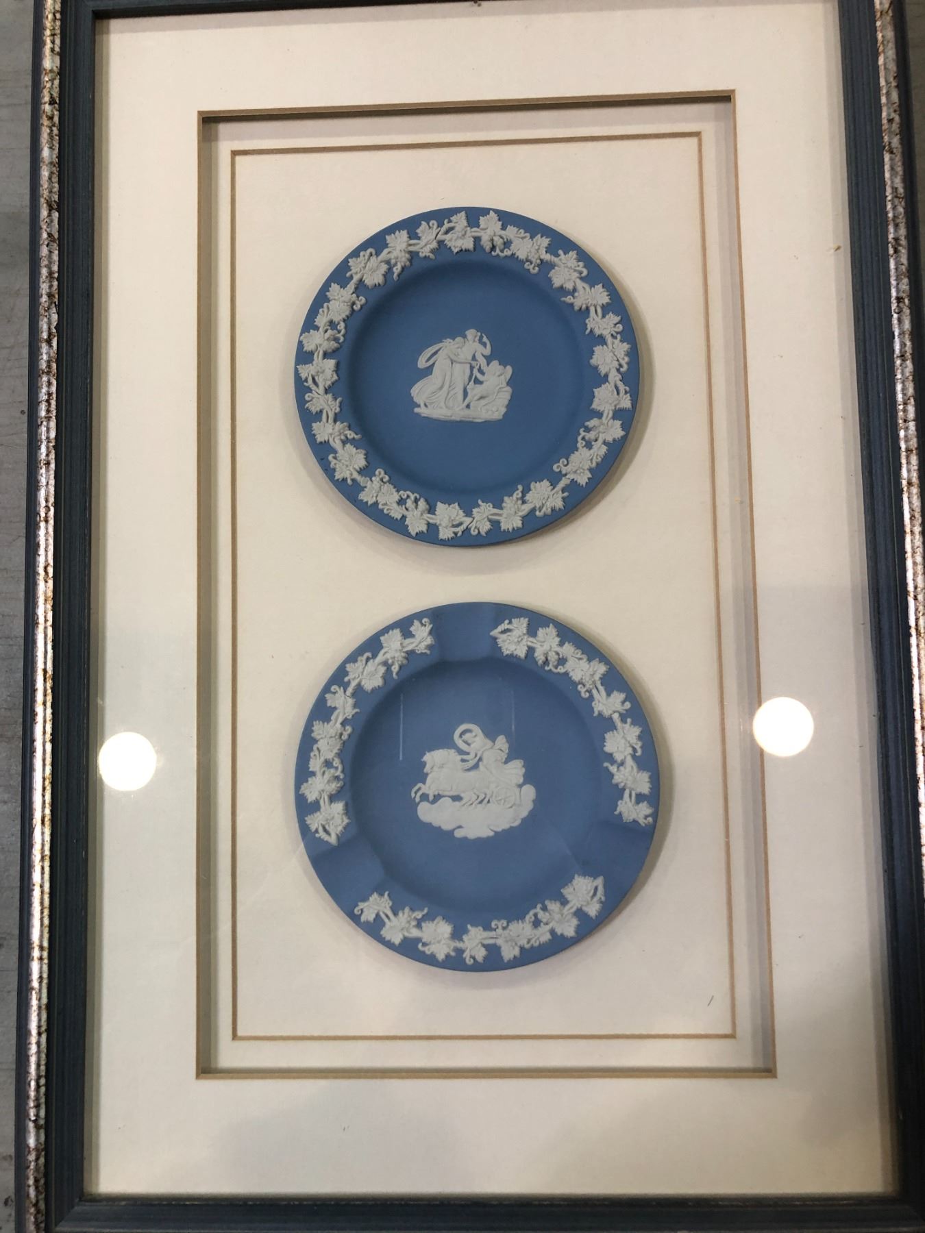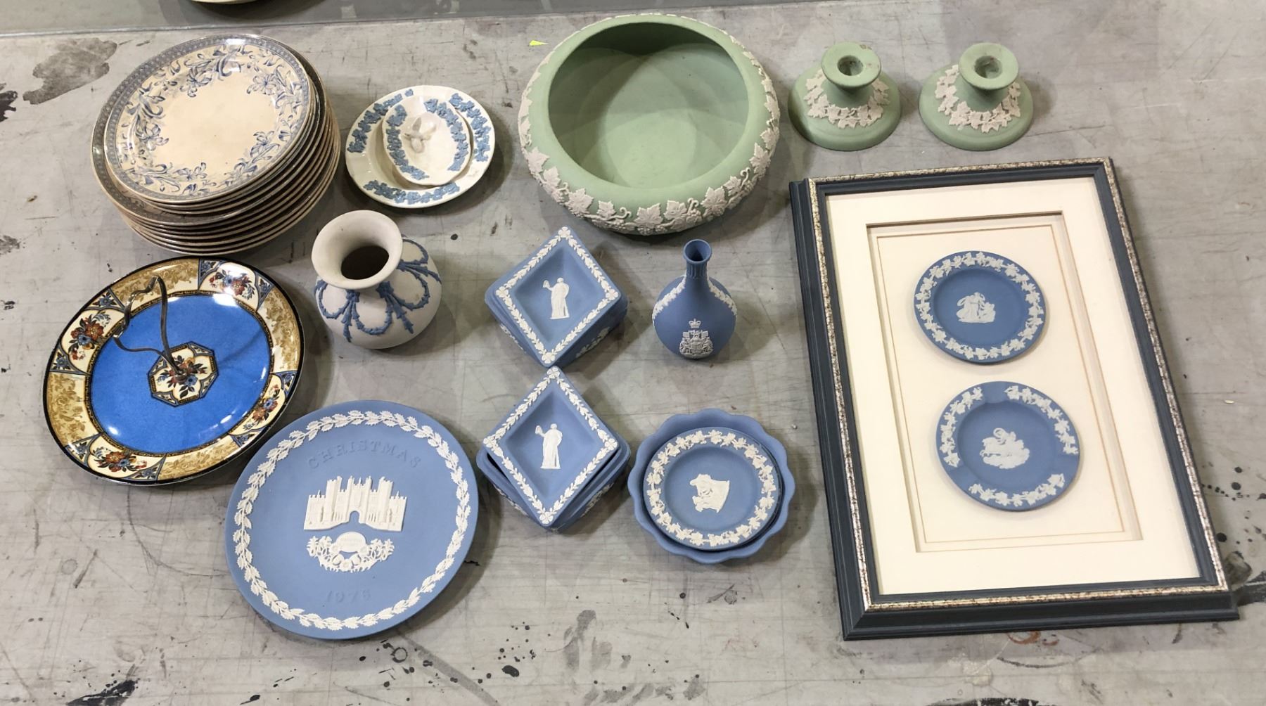 Large group of assorted Wedgwood - includes green & blue plates / 2 plates in frame / 11 serving plates etc