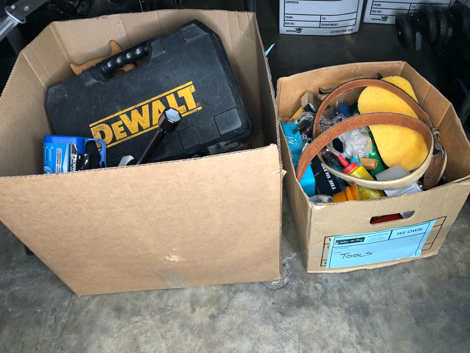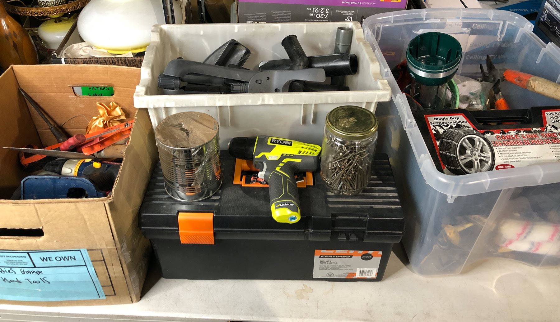 Large group of assorted items - includes tools/ vacuum parts/ empty toolboxes etc.