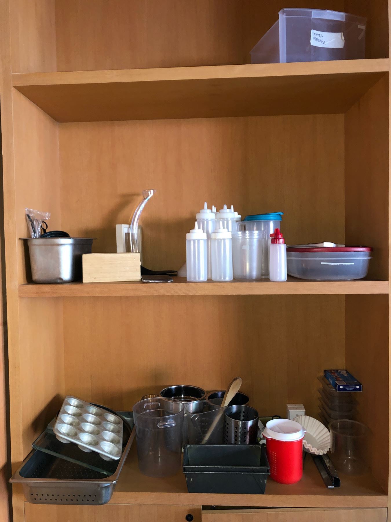 Large group of assorted kitchen supplies - includes baking trays/squeeze bottles etc.