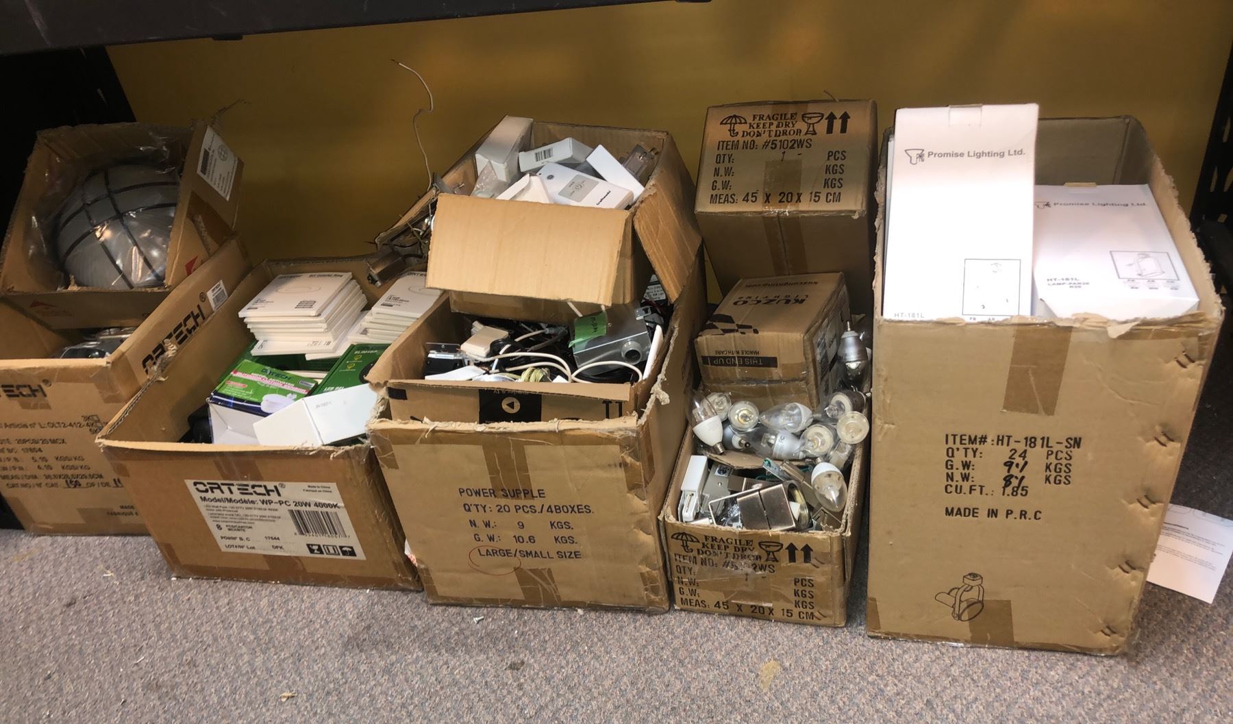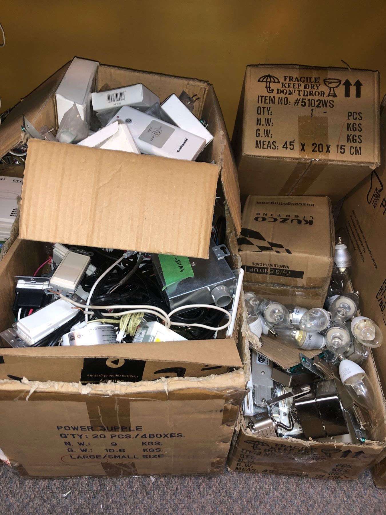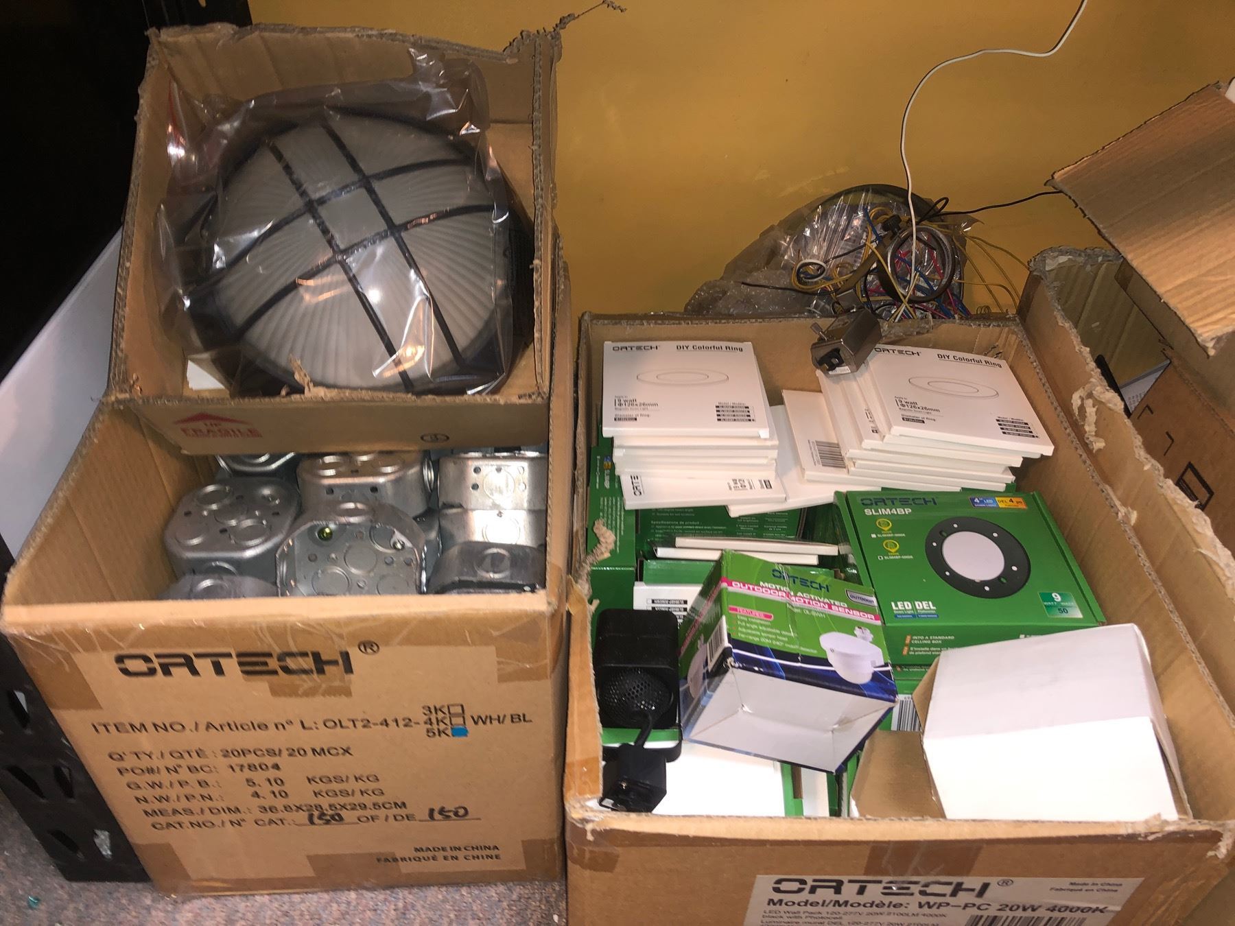 Large group of assorted lighting & electrical parts includes - Ortech DIY colourful rings, LED lights, craft made remotes/bulbs, etc...