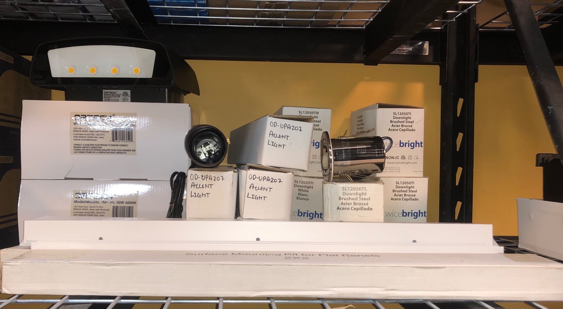 Large group of assorted lighting includes - LED wall packs, accent lights, downlights, etc...