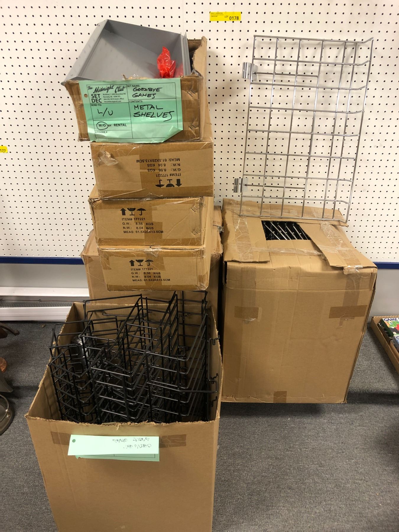 Large group of assorted metal shelves & wire display shelves