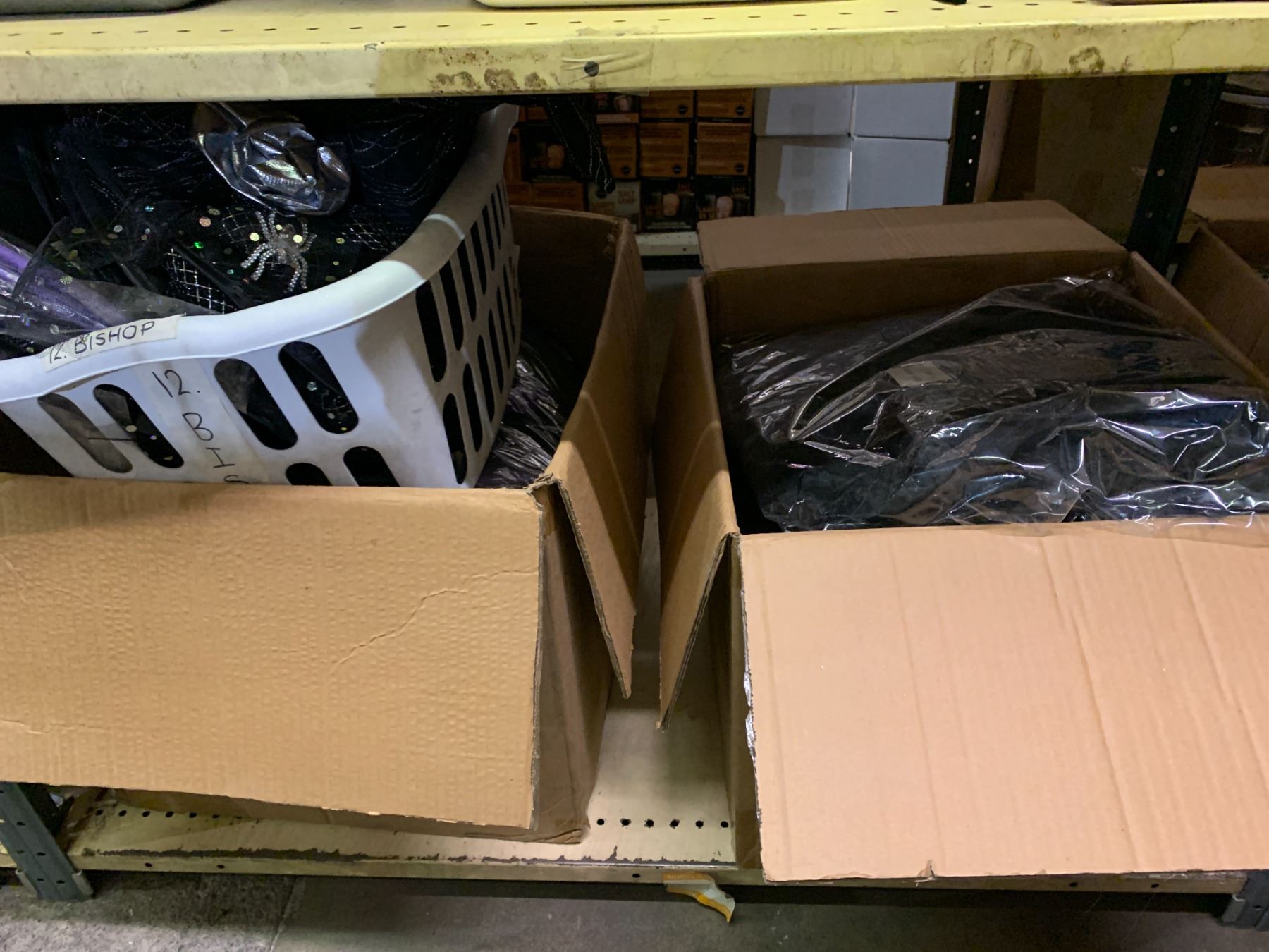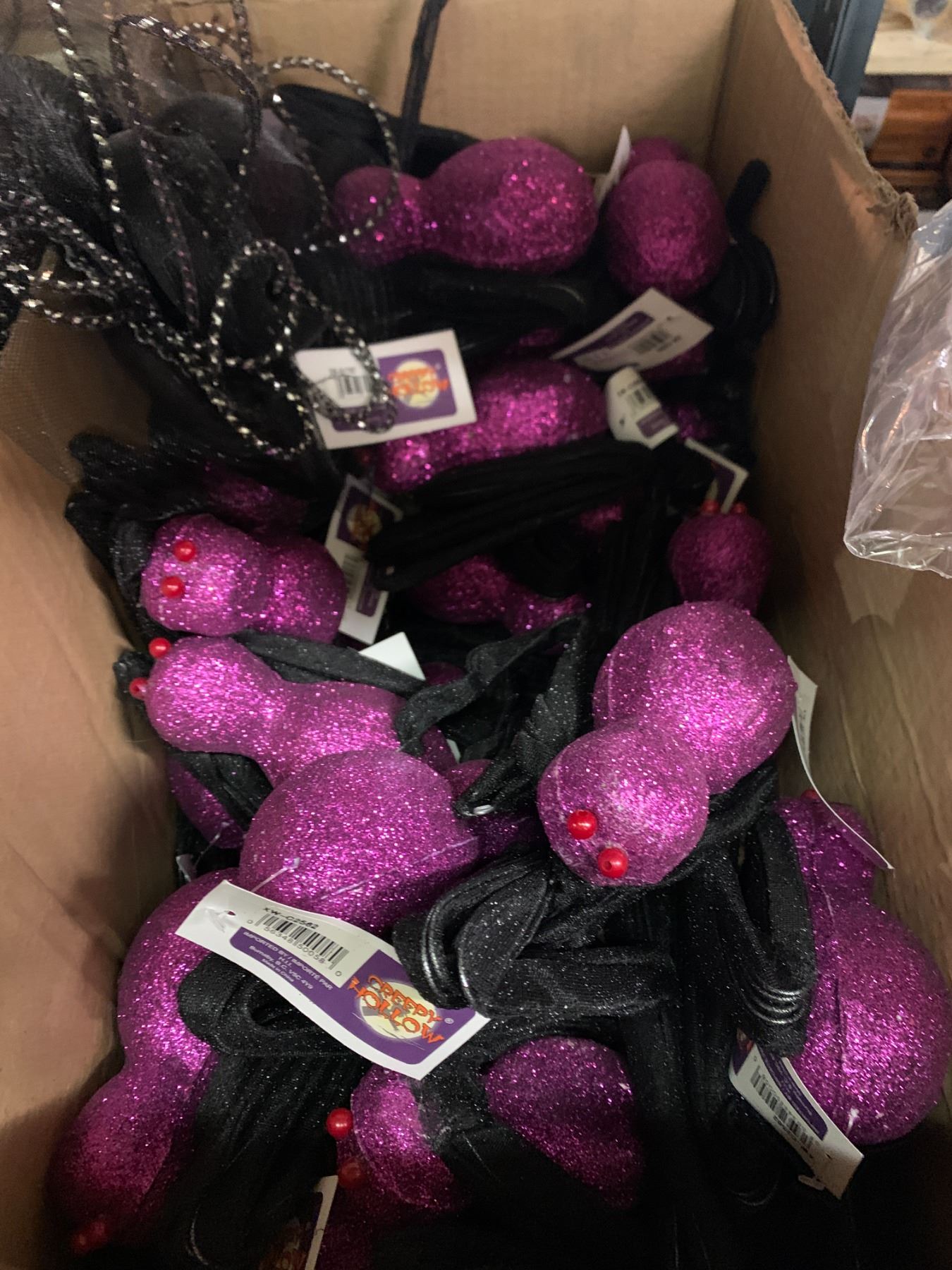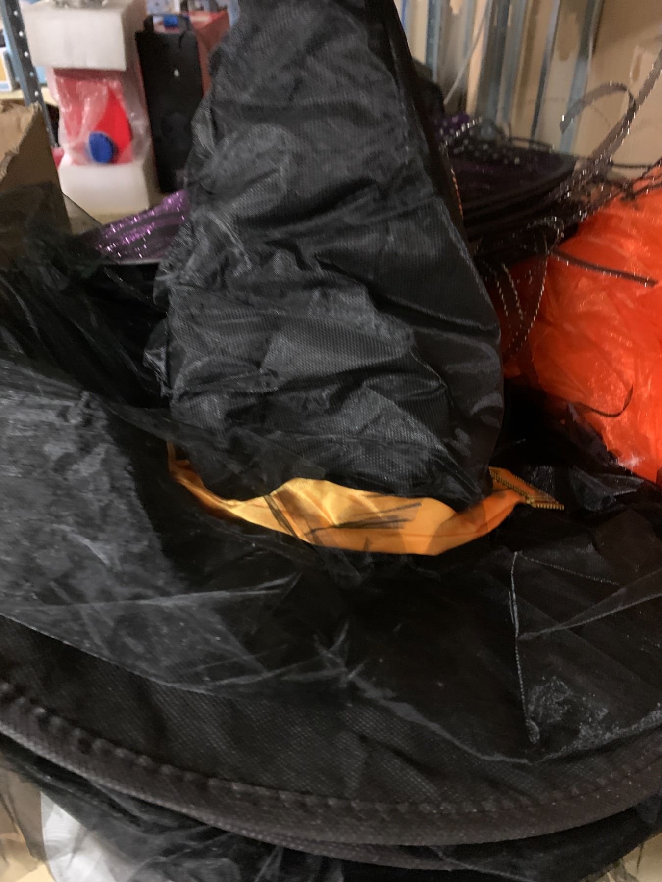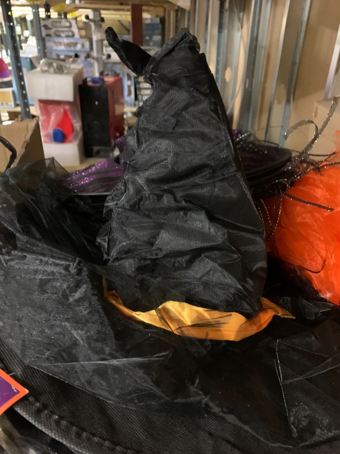 Large group of assorted misc. Halloween items - includes witch hats/decorative spiders/wall signs/hairbands etc. (approx 20 boxes)
