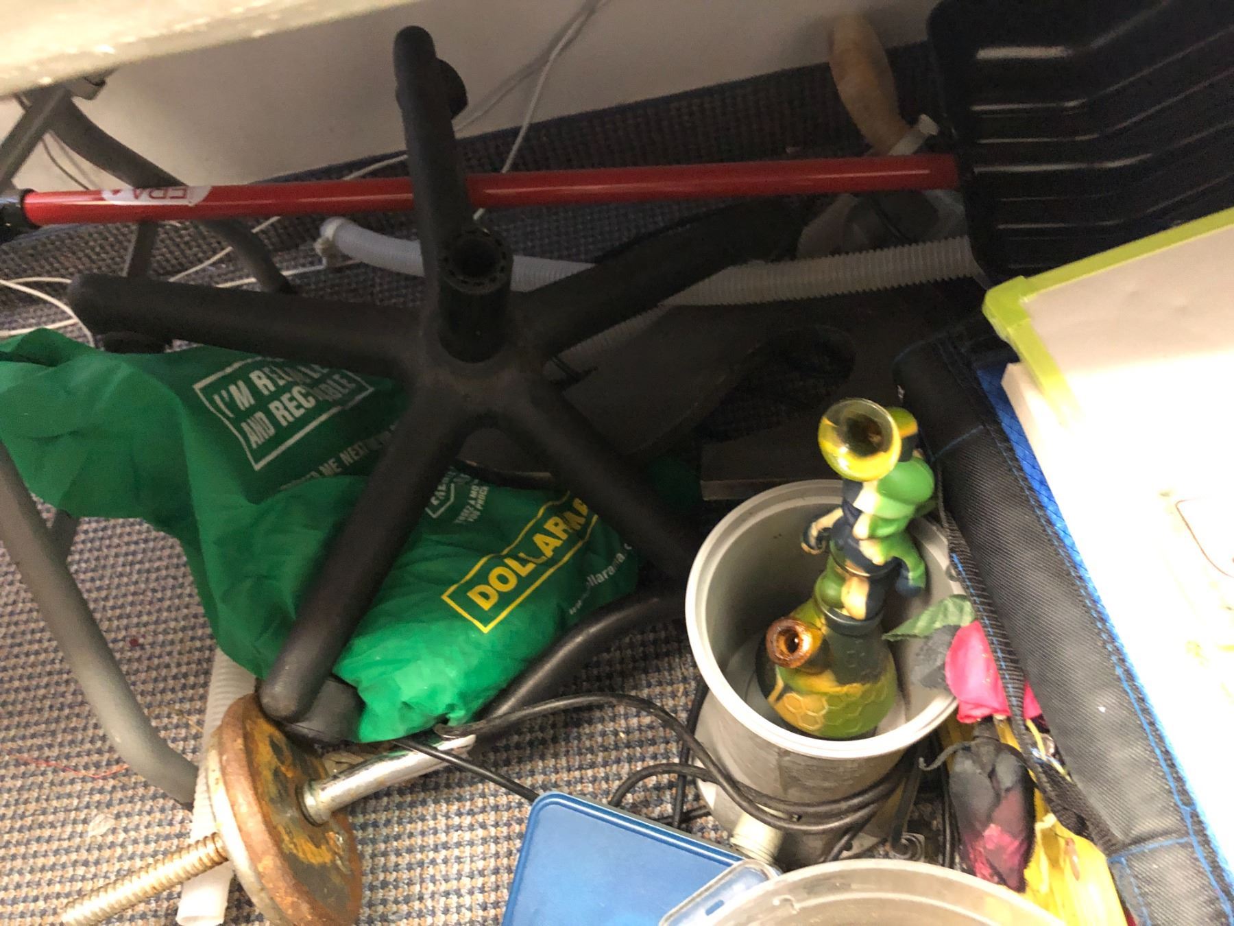 Large group of assorted misc items - includes snow shovel / desk chair / raft boat set (may be incomplete) / room screen divider / bicep curl barbell etc