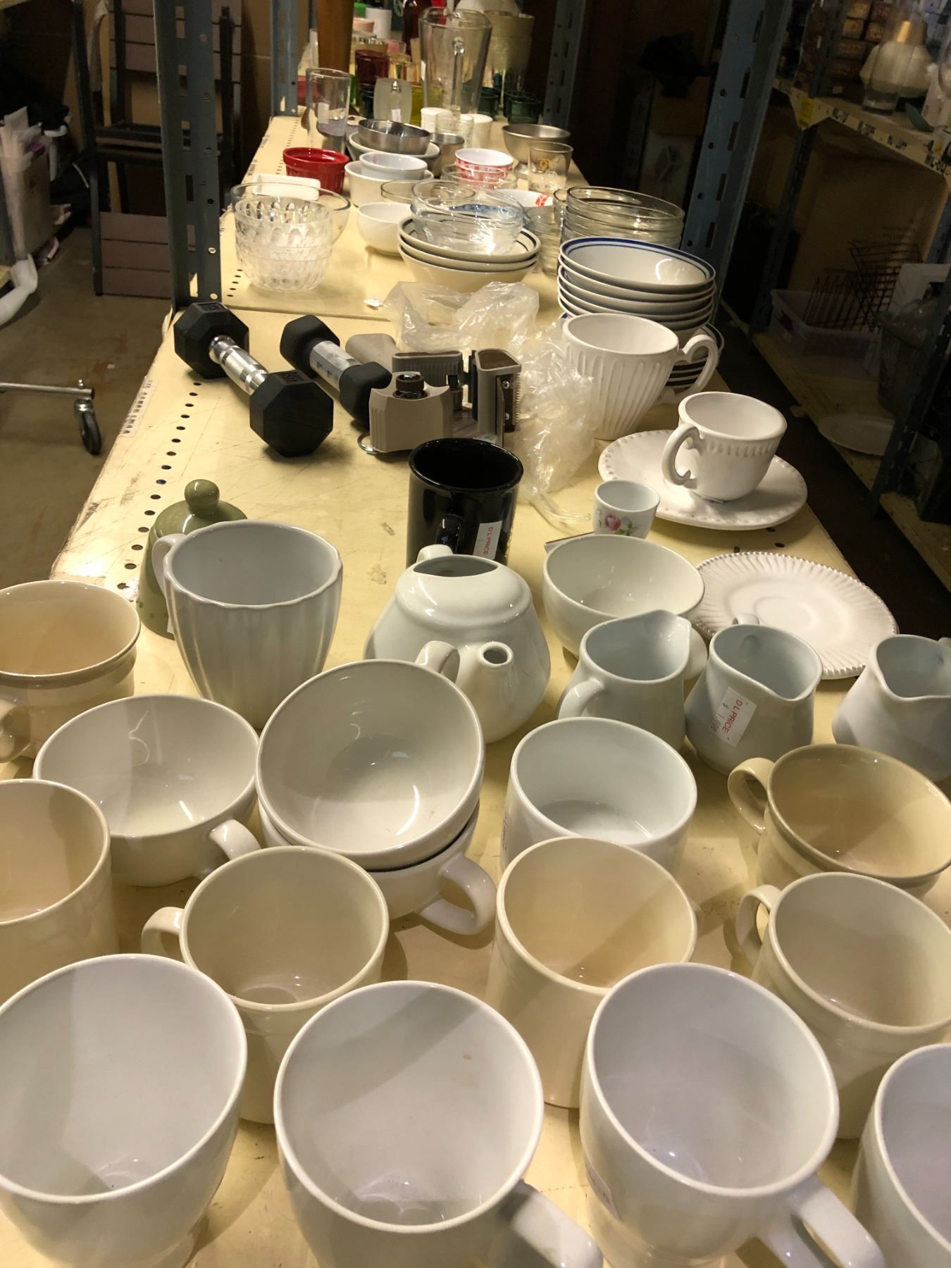 Large group of assorted misc. tableware - ceramic cups/dessert glass stand/glasses etc.
