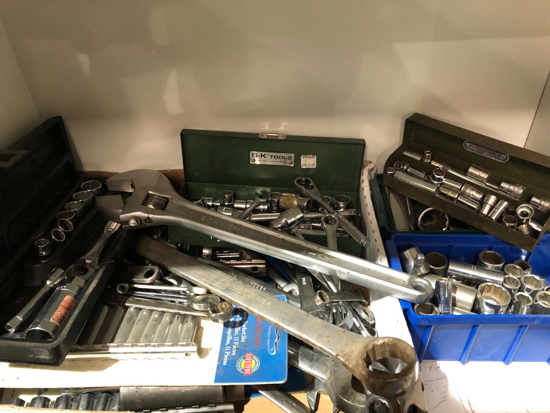 Large group of assorted sockets/ ratches/ wrenches etc. - assorted brand names include Armstrong/ S&