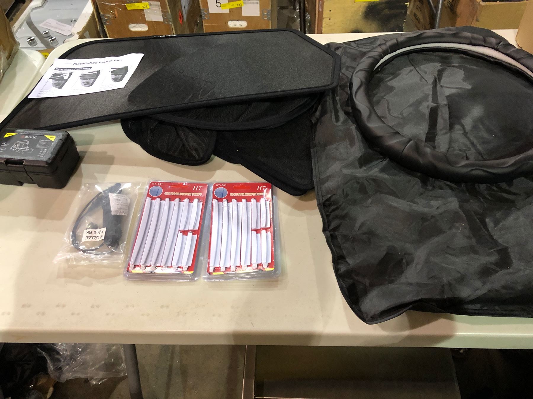 Large group of misc automotive attachments - includes 2 sets of car shades / 2 sets of car door pumper strips / steering wheel cover etc
