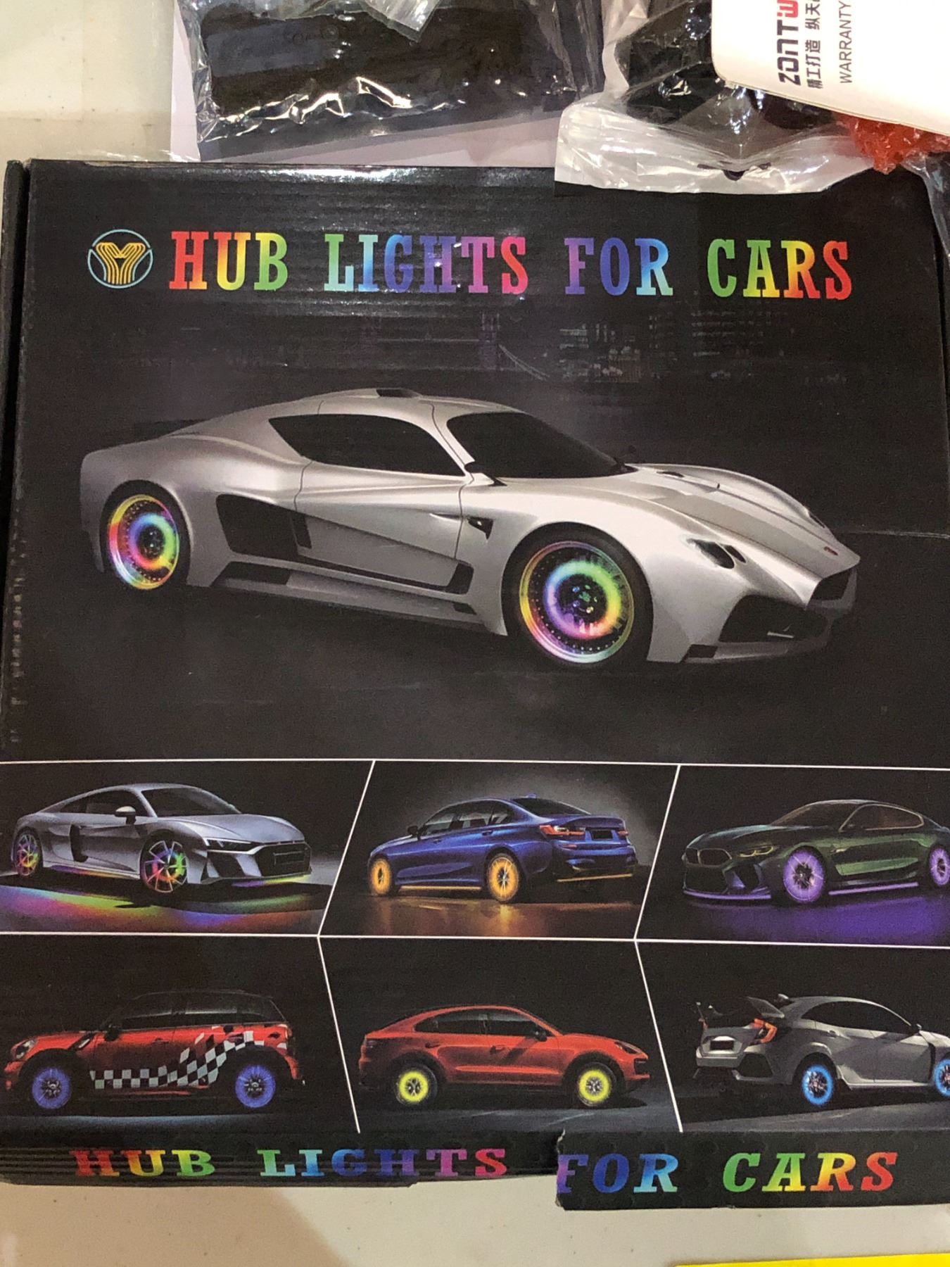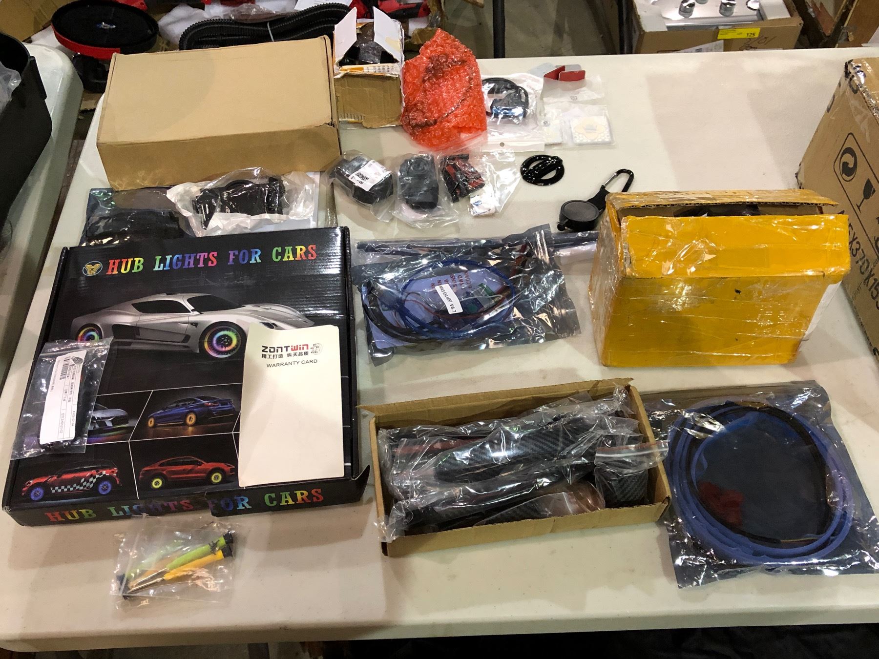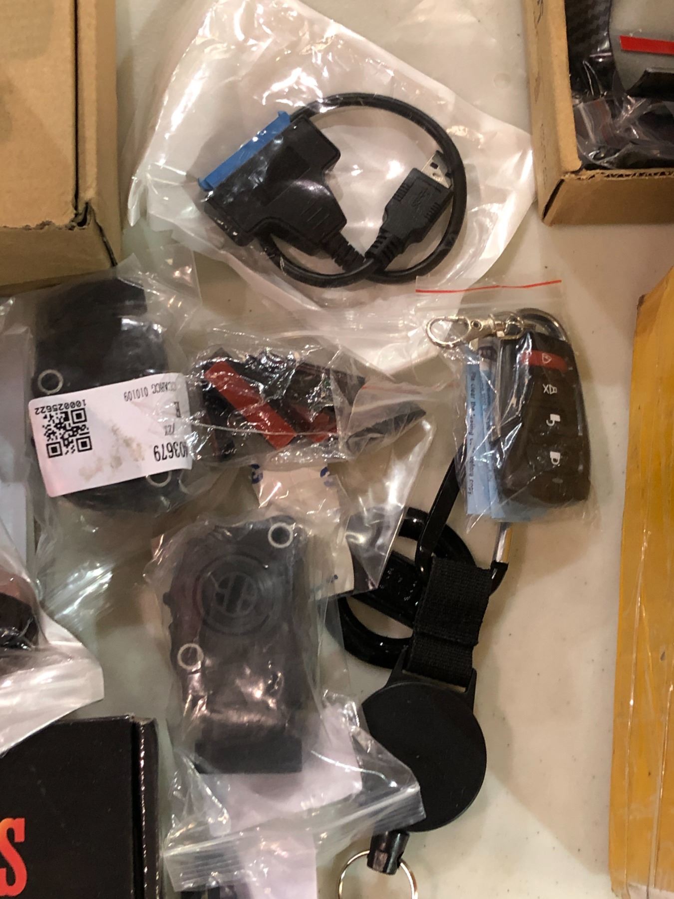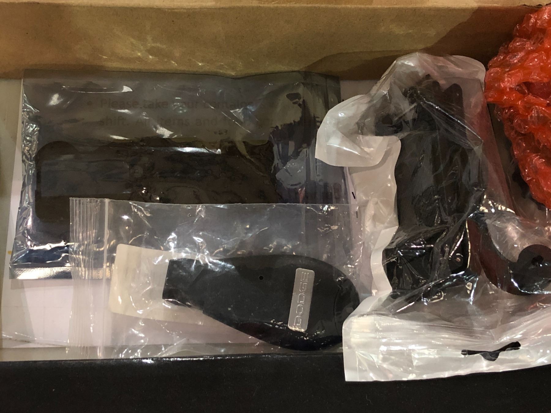 Large group of misc. car parts - includes dodge key cover / carpet fibre door handles / hub lights / wiper etc