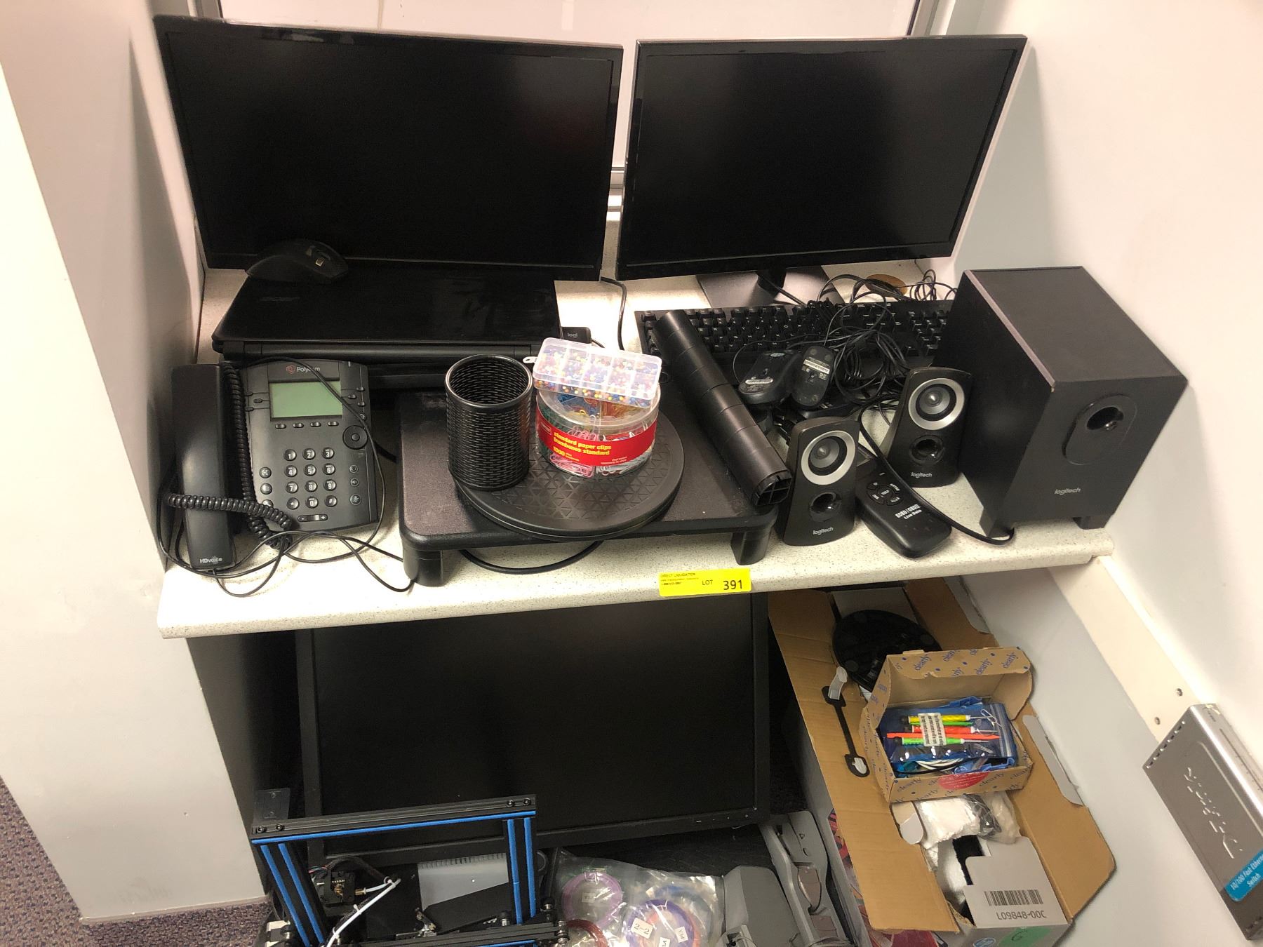 Large group of misc. electronics - includes LCD monitors/ keyboards/ mice/ 2 laptops without chargers/ telephone/ Geeetech 3D printer etc.
