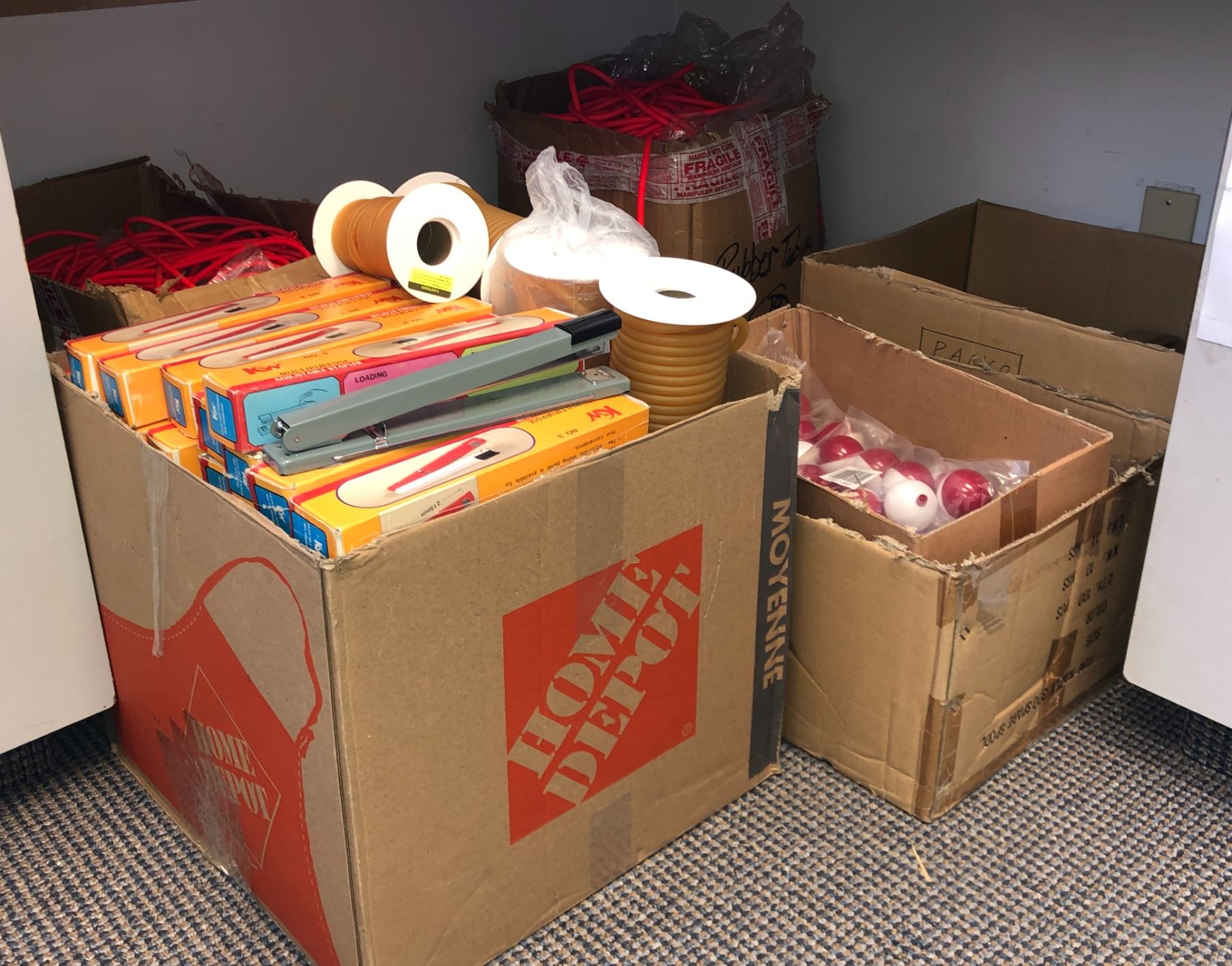 3 boxes full of red tubing