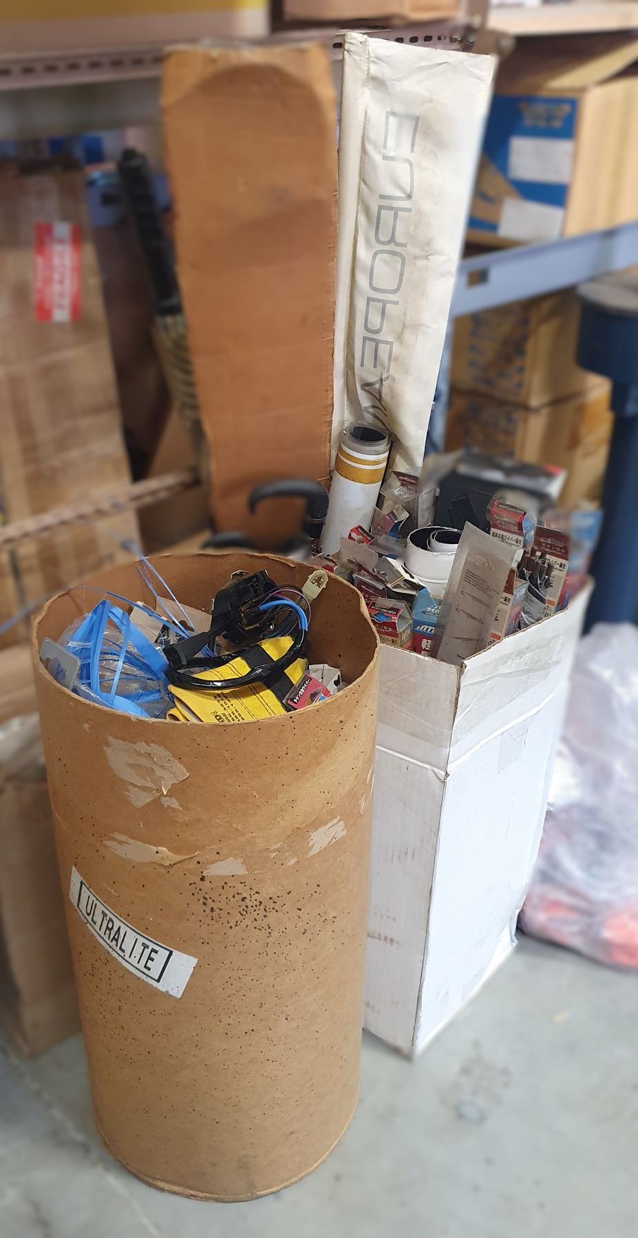 Large group of misc - includes box full of windshield wipers / service parts / umbrellas / fabric protection etc