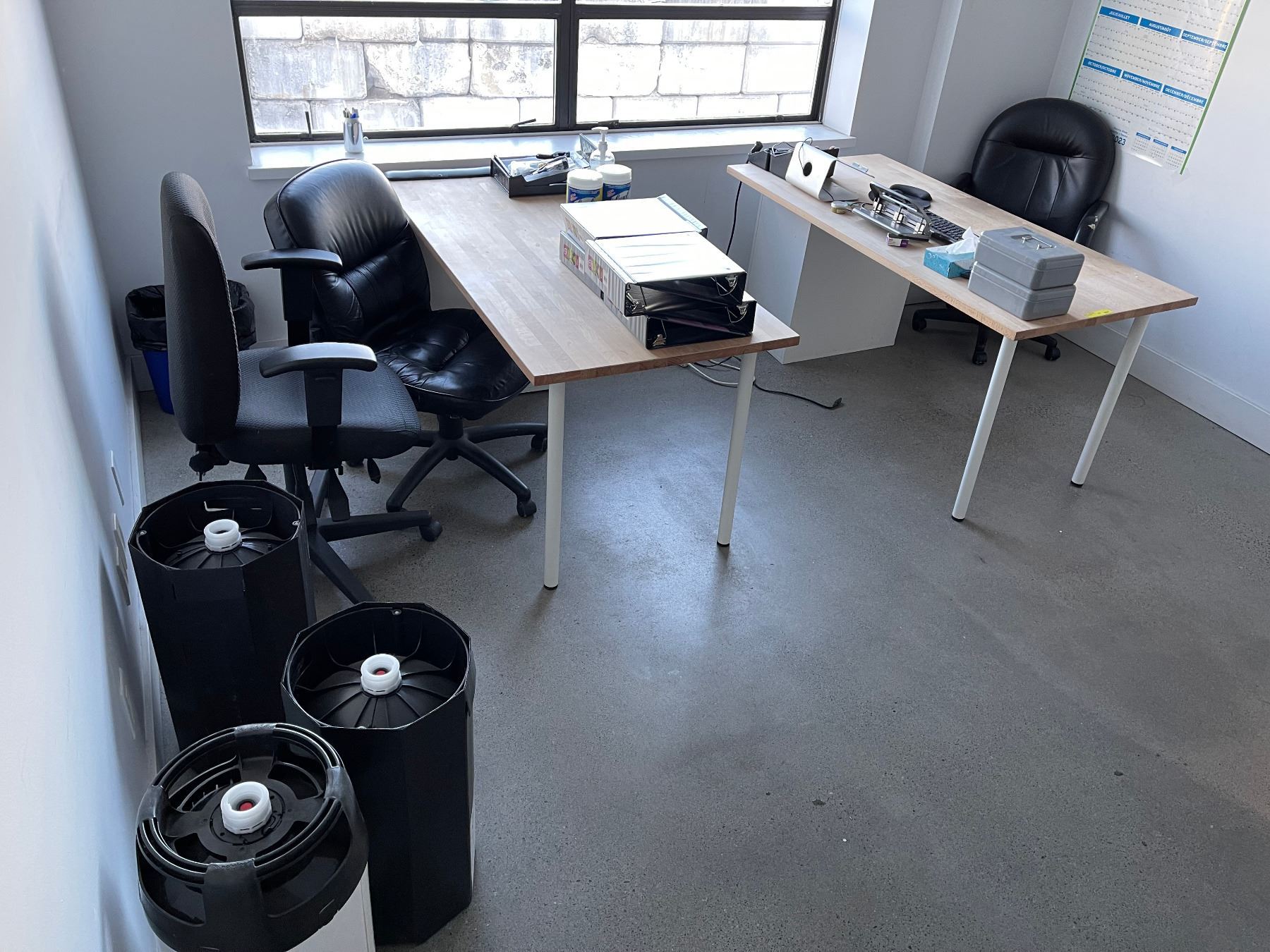 Large group of office furniture - includes 2 office desks/ office chairs etc.