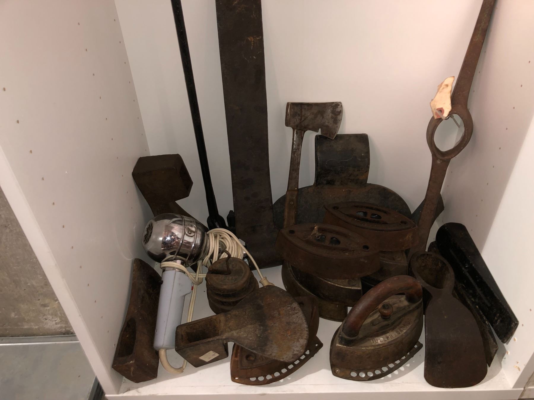 Large group of rustic tool heads & sad irons