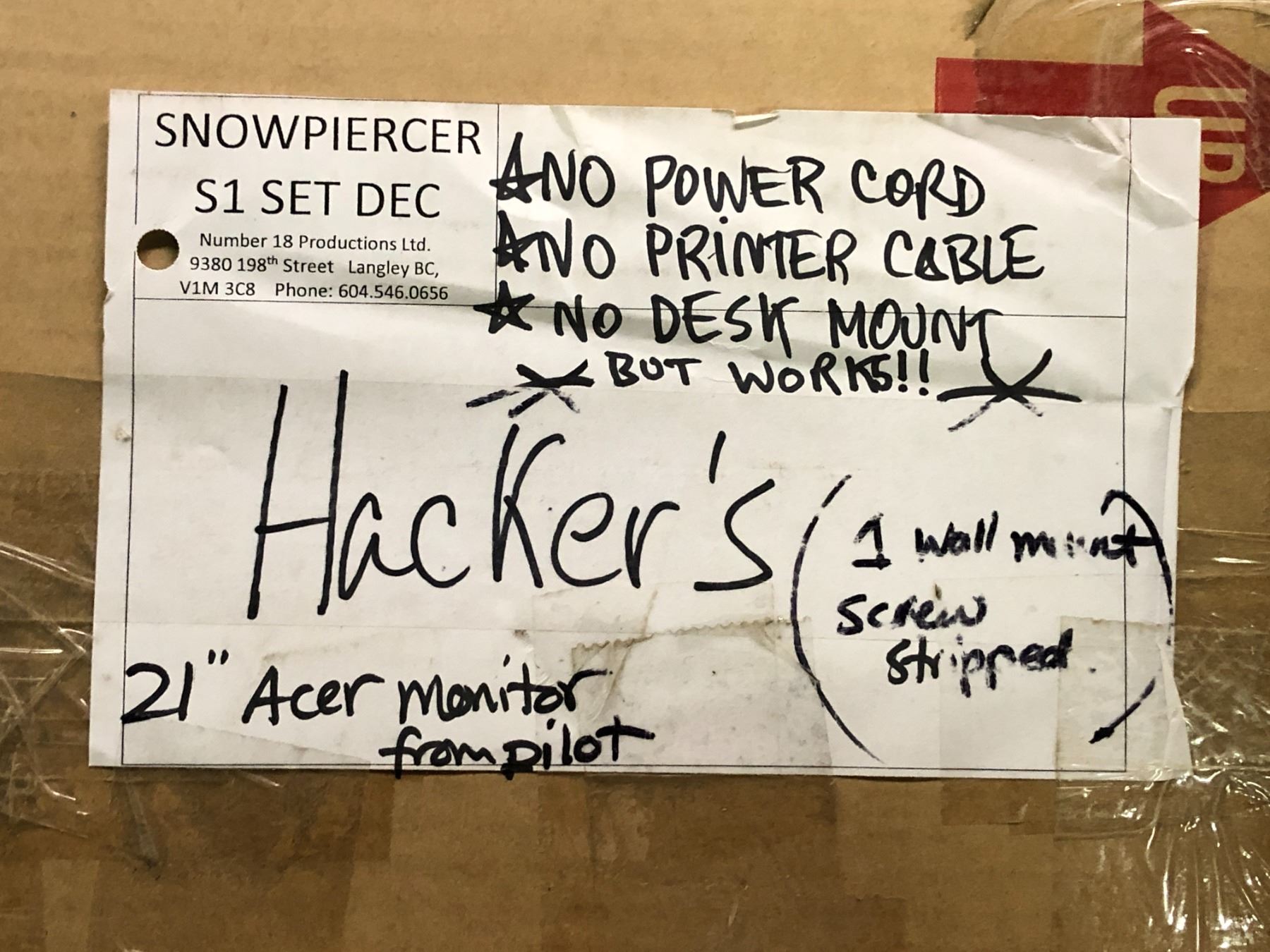 PICK UP LOCATION: Main Building & Building 4 - 2306 Madison Ave, Burnaby, V5C 5E3