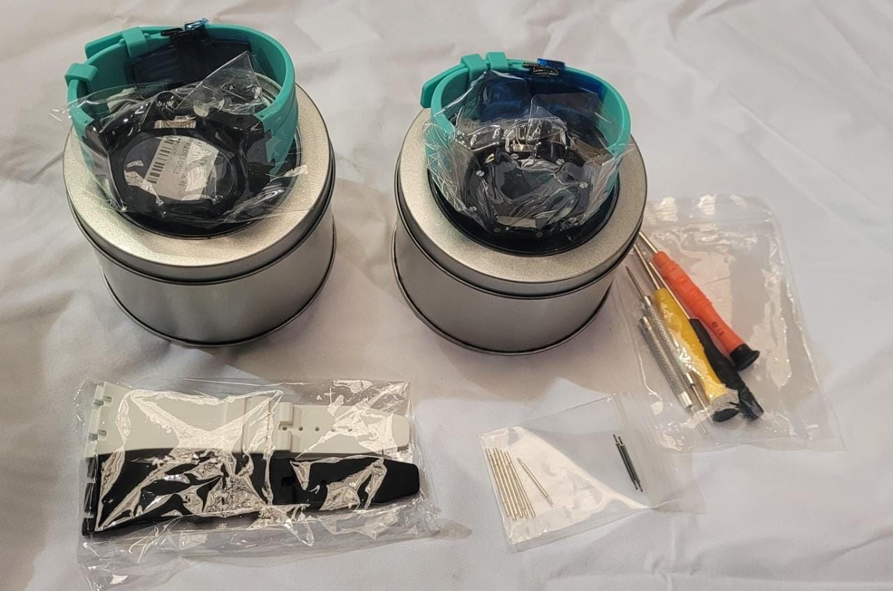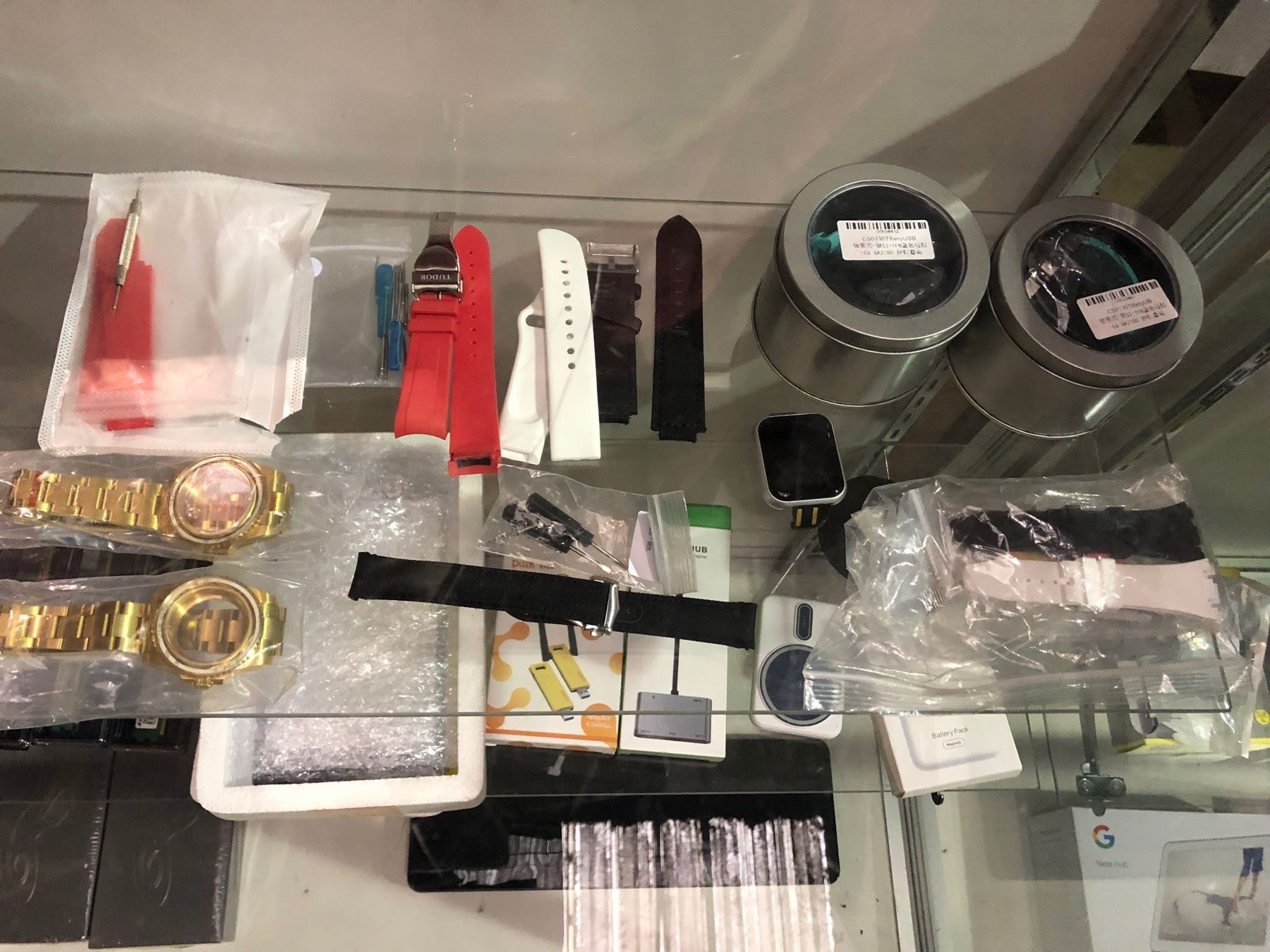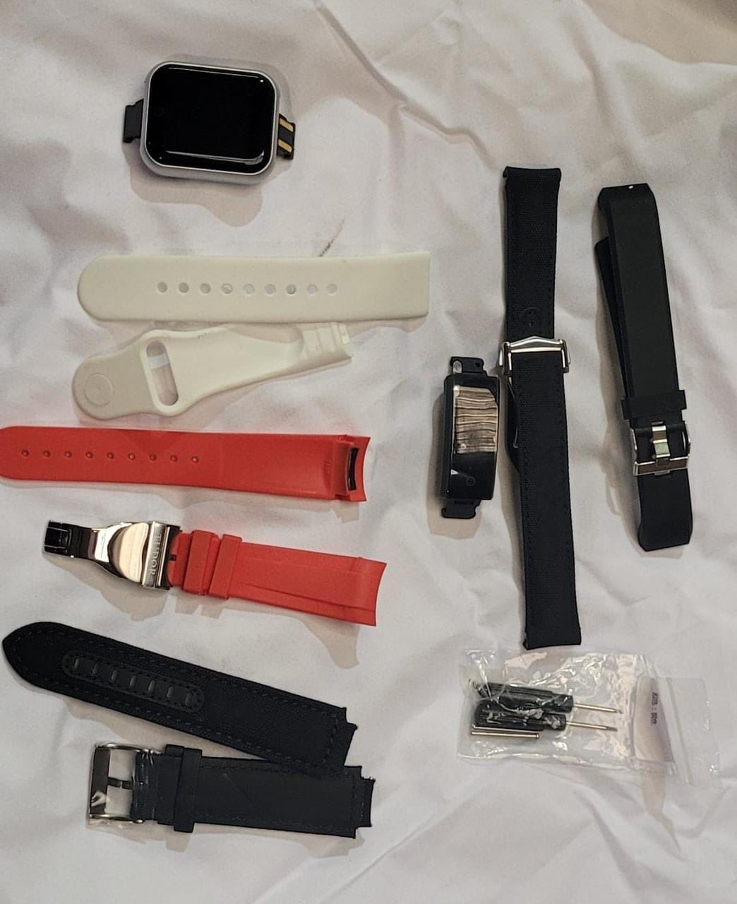 Large group of watch accesories & smart watch - includes rubber straps / leather straps / chains etc